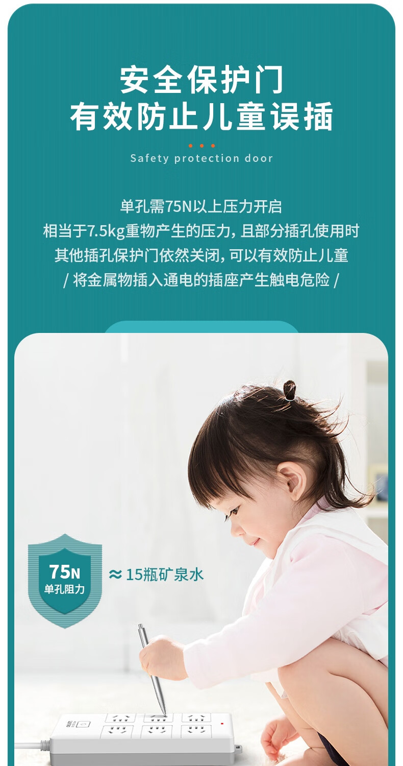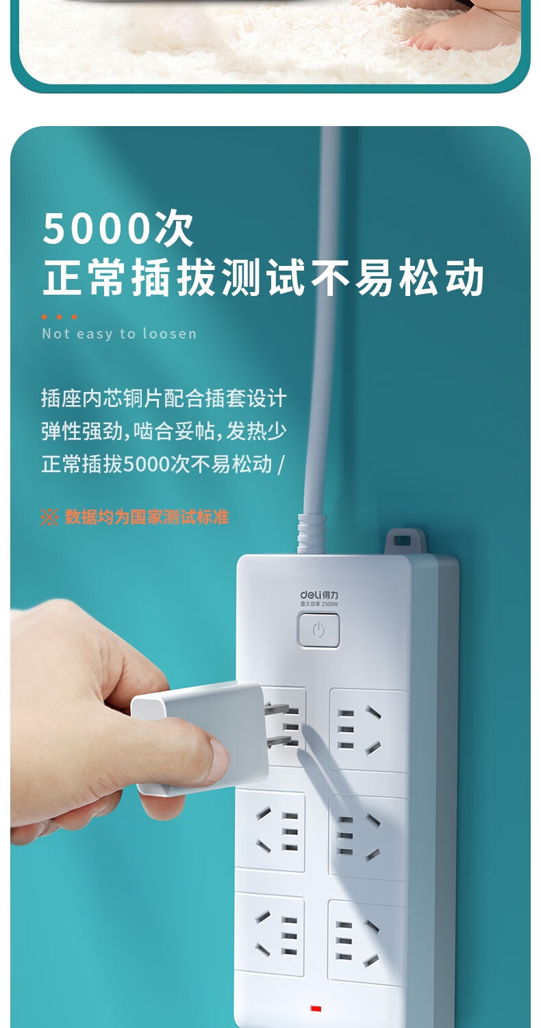 商品名稱:得力18168-05 插座 多功能插排/插線板/拖線板/接線板/電插板/插座板 6位5米 (白)(只)