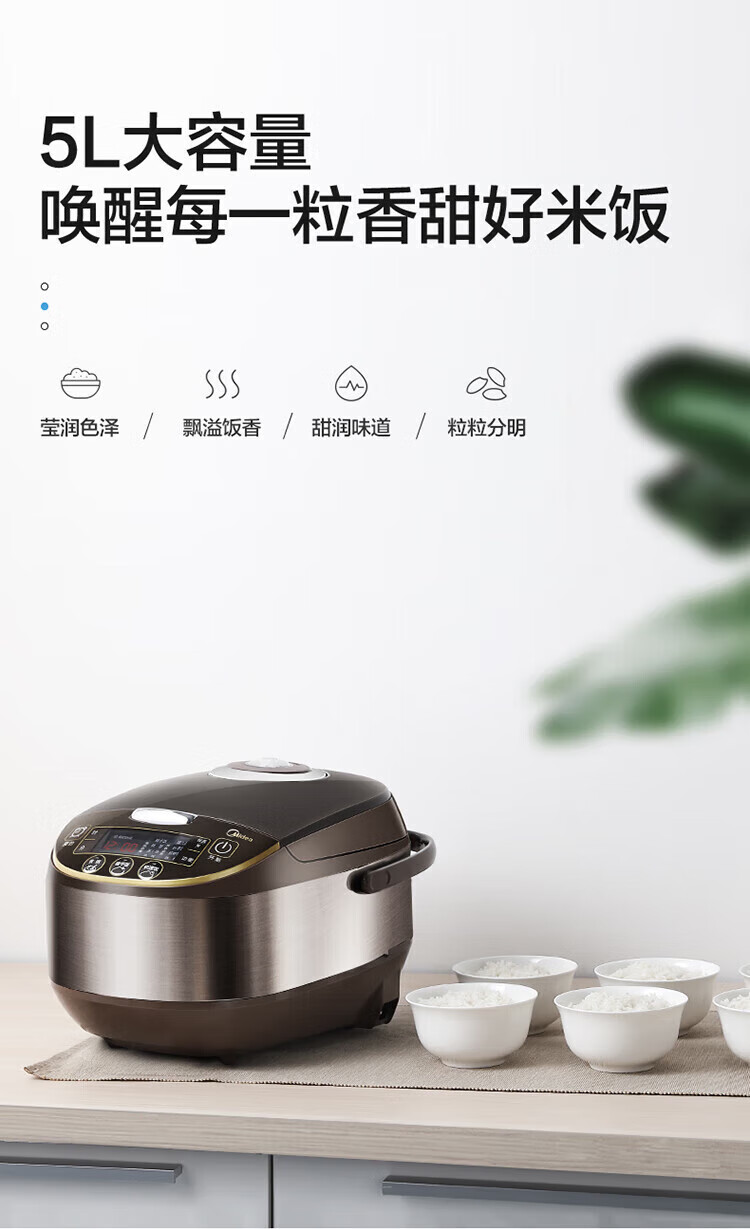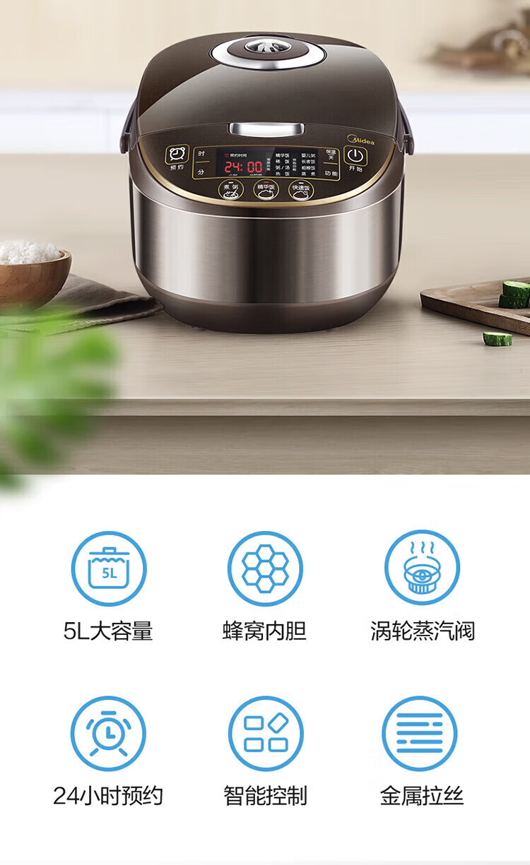 商品名稱:美的WFS5017TM 智能電飯煲 電飯鍋家用5L大容量預(yù)約氣動渦輪防溢鍋金屬機(jī)身蒸米飯鍋(3-10人)