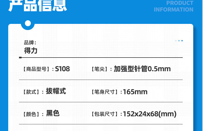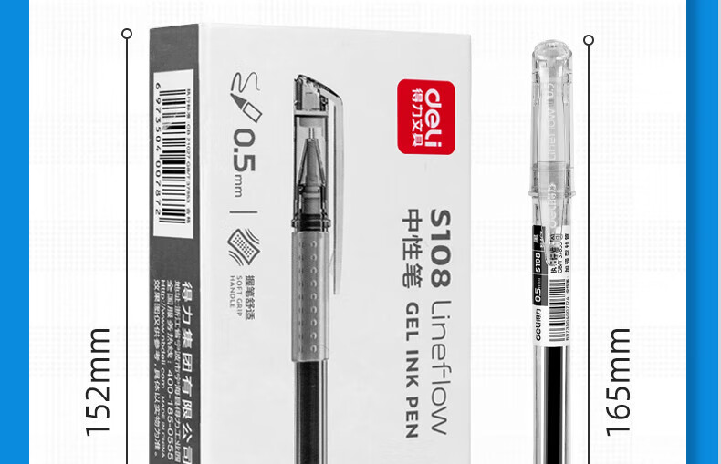 商品名稱:得力S108 中性筆 臻順滑無(wú)印風(fēng)ins冷淡風(fēng)辦公筆 0.5mm全針管 黑色 12支/盒 【順滑之星】
