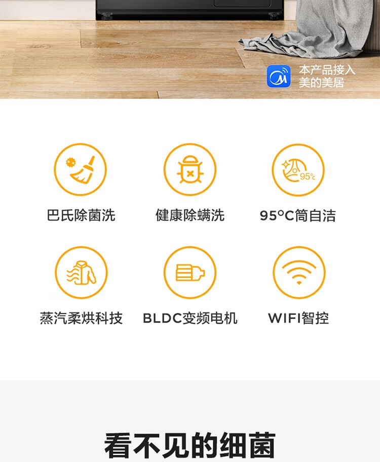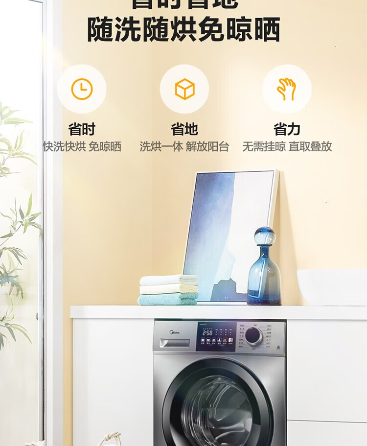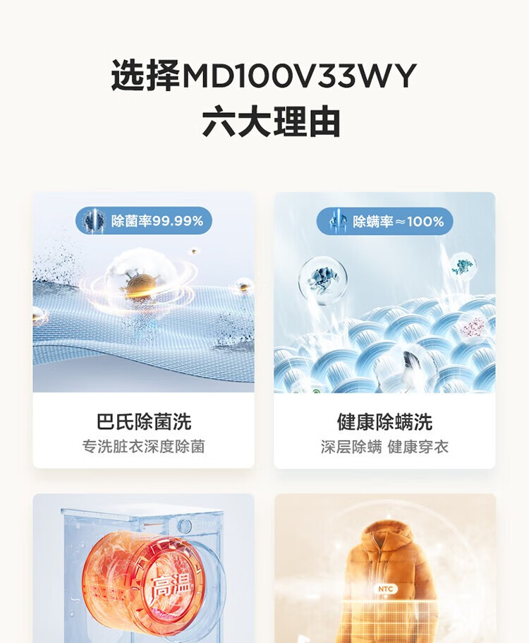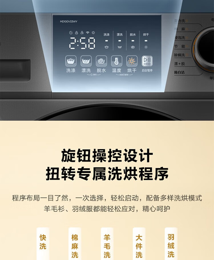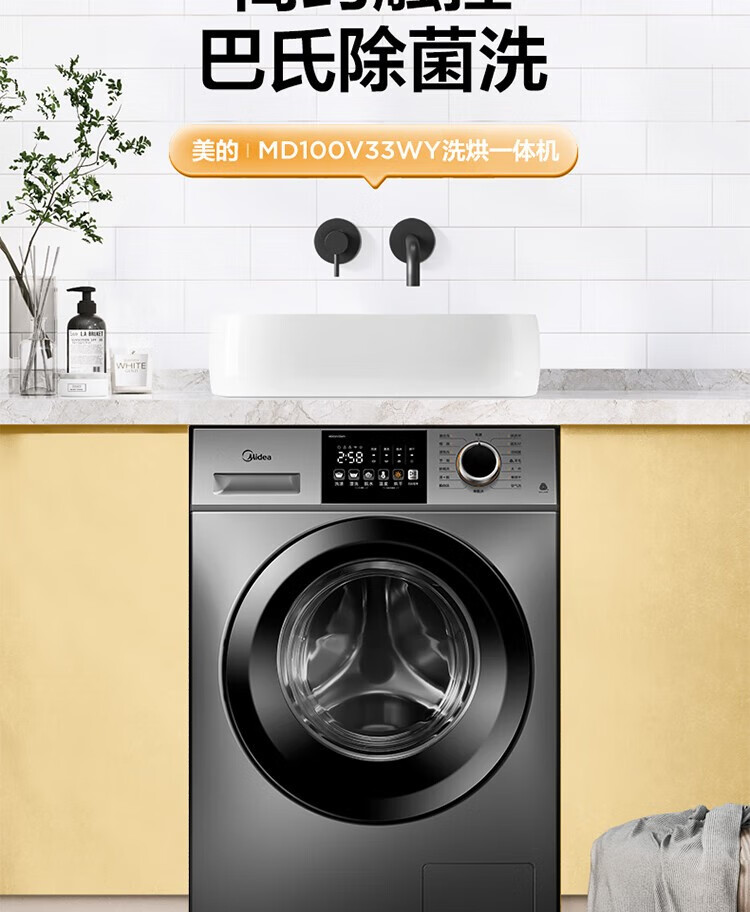 商品名稱:美的MD100V33WY 滾筒洗衣機(jī)全自動 V33 洗衣機(jī)帶烘干洗烘一體機(jī) 除菌凈螨 簡尚系列 超薄款 10公斤