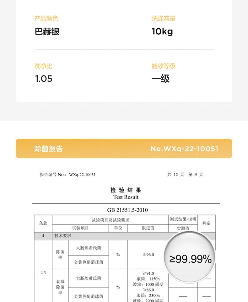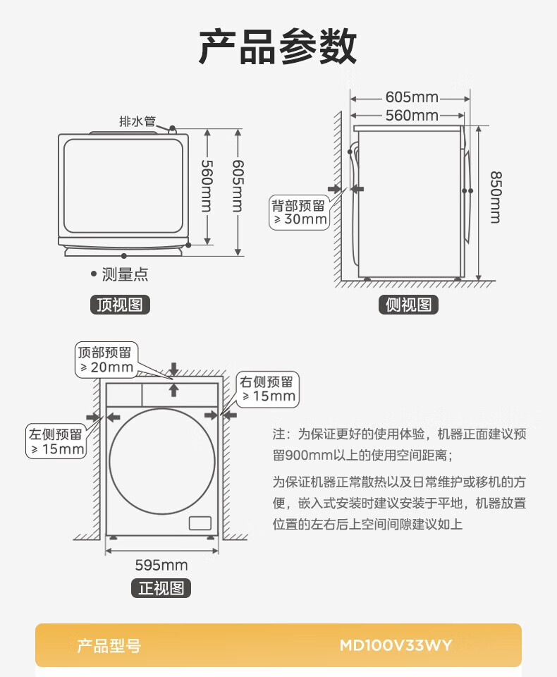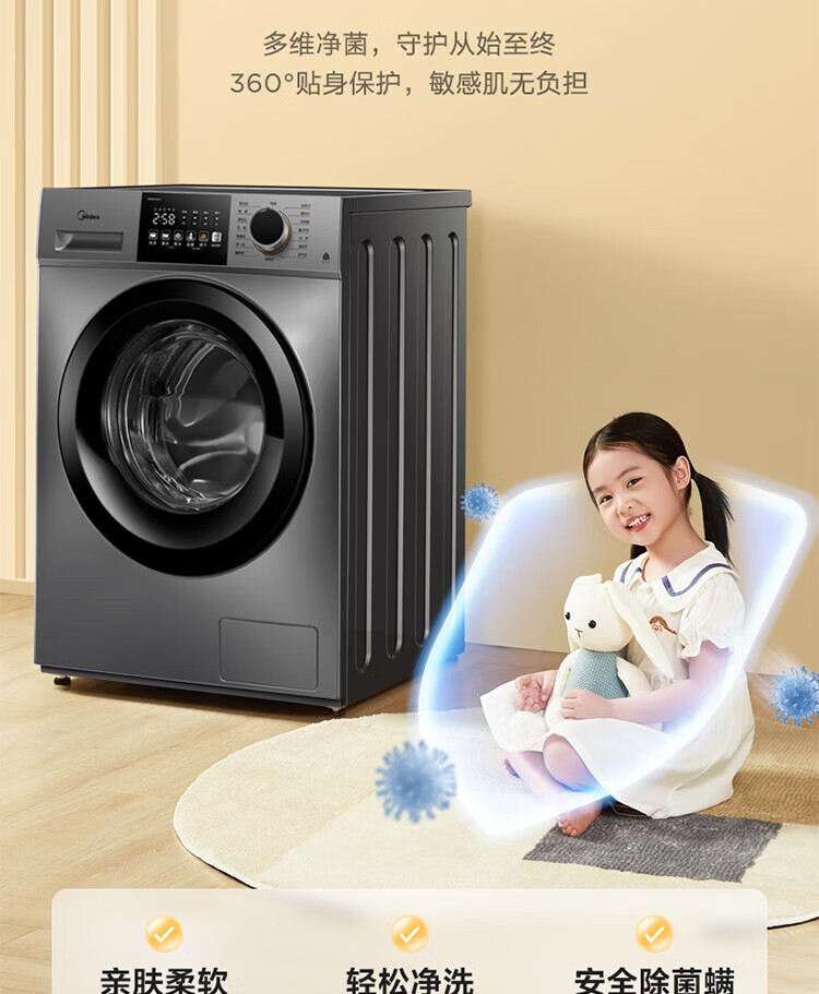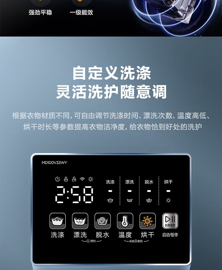 商品名稱:美的MD100V33WY 滾筒洗衣機(jī)全自動 V33 洗衣機(jī)帶烘干洗烘一體機(jī) 除菌凈螨 簡尚系列 超薄款 10公斤