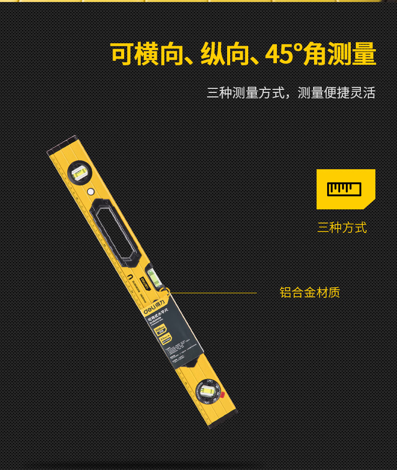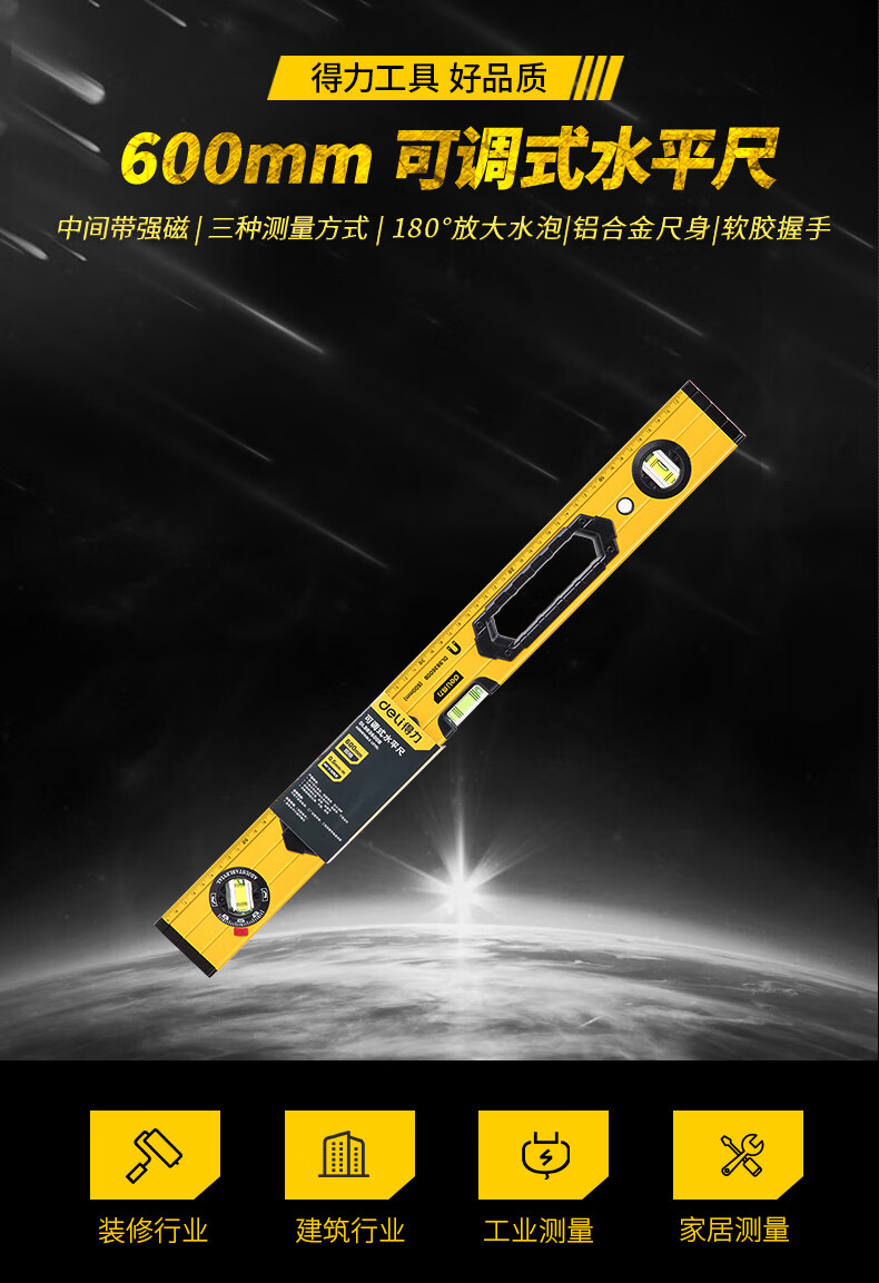 商品名稱:得力DL983600B 可調(diào)式水平尺 高強(qiáng)磁多角度精度鋁合金水平測量尺防摔平衡儀600mm