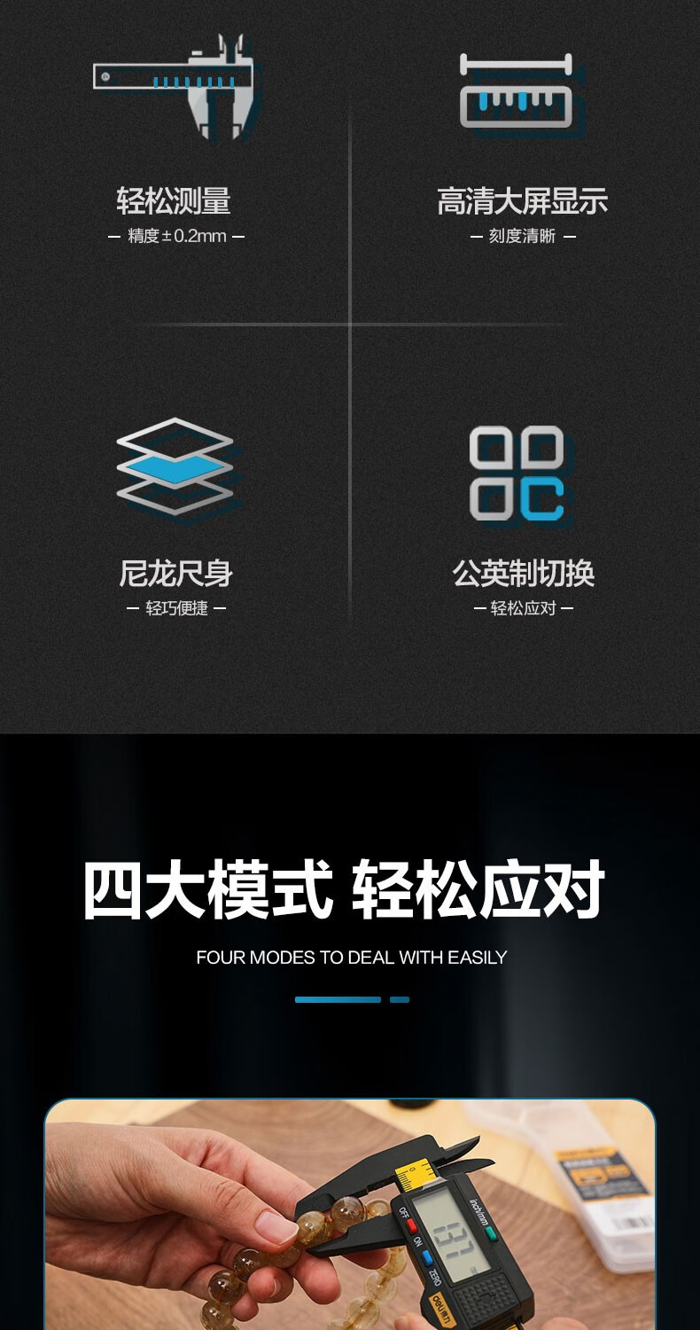 商品名稱:得力DL90150 數(shù)顯卡尺 碳纖維電子游標卡尺高精度內(nèi)外徑家用文玩古玩珠寶測量