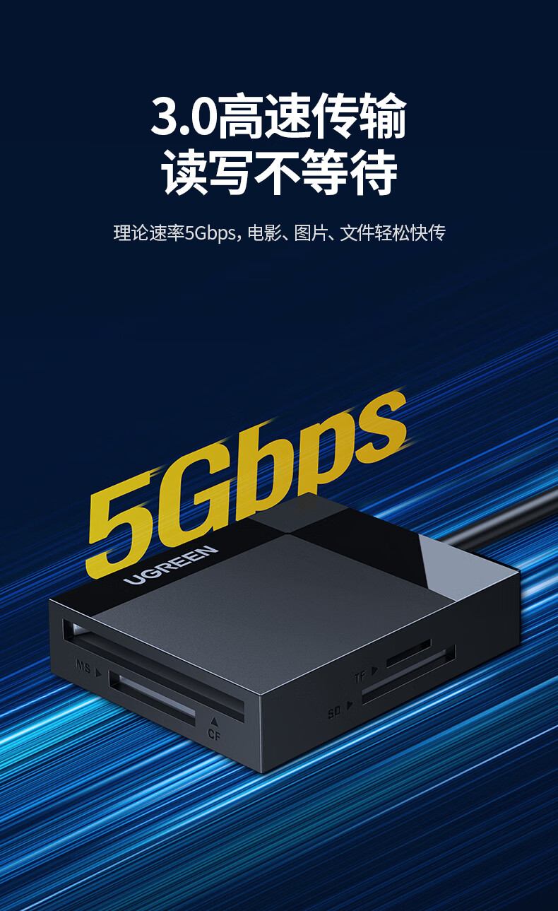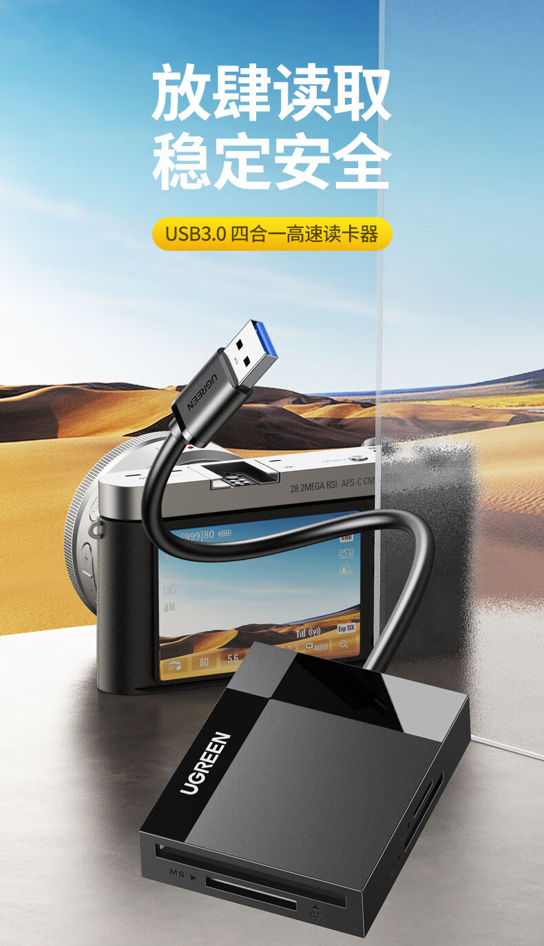 商品名稱:綠聯(lián)30229 多功能合一讀卡器 USB3.0高速 支持SD/TF/CF/MS型相機行車記錄儀監(jiān)控內(nèi)存卡手機存儲卡 線長0.5m