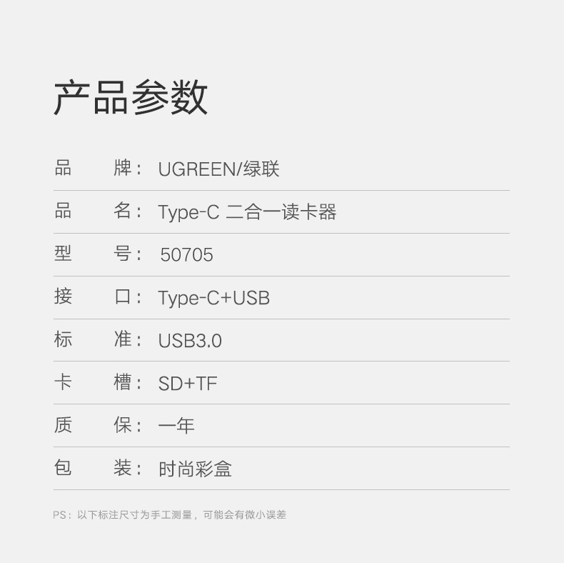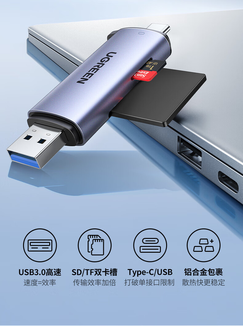 商品名稱:綠聯(lián) USB/Type-C讀卡器 3.0高速 SD/TF多功能 適用電腦蘋(píng)果15/iPad/安卓手機(jī) 支持相機(jī)無(wú)人機(jī)監(jiān)控內(nèi)存卡