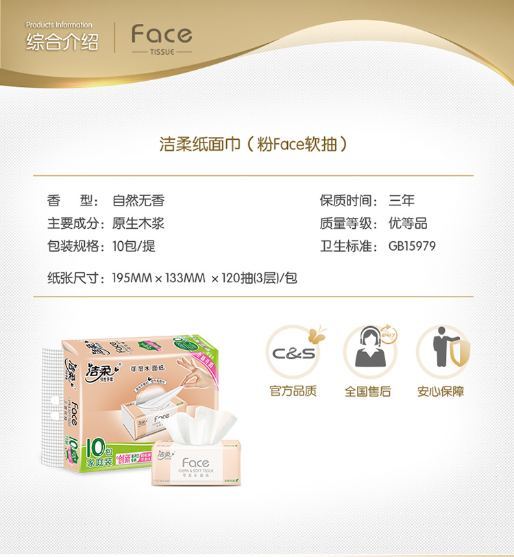 商品名稱:潔柔 抽紙 粉Face柔韌3層120抽*10包 可濕水面巾紙 100%原生木漿