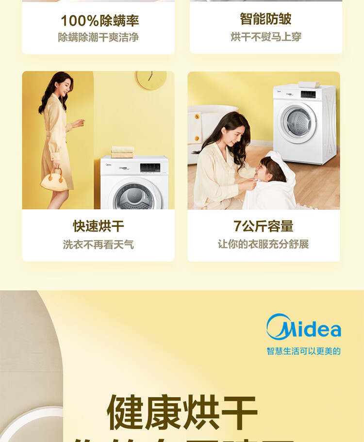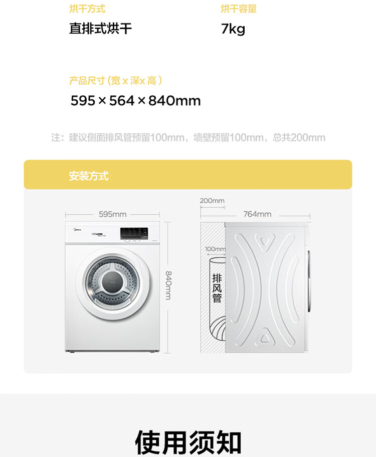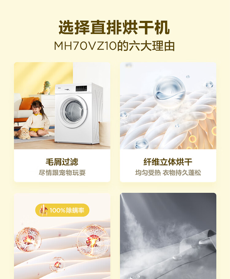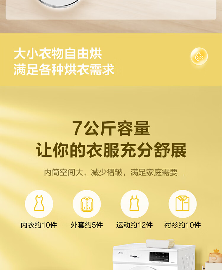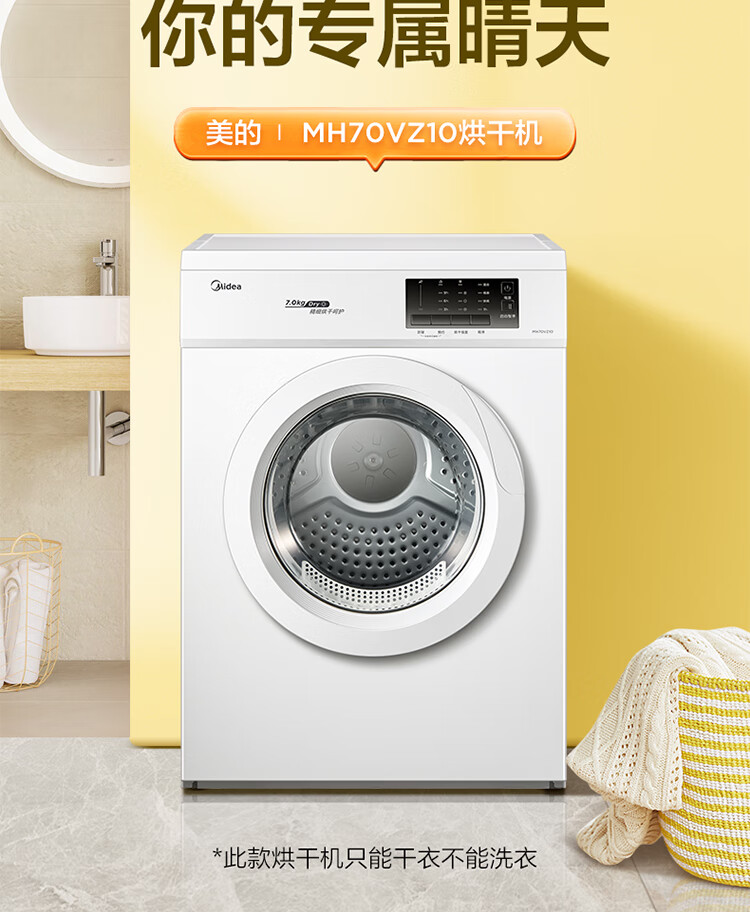 商品名稱:美的MH70VZ10 烘干機 直排式干衣機 7公斤健康烘干 祛味除螨 纖維立體烘干 高溫除螨