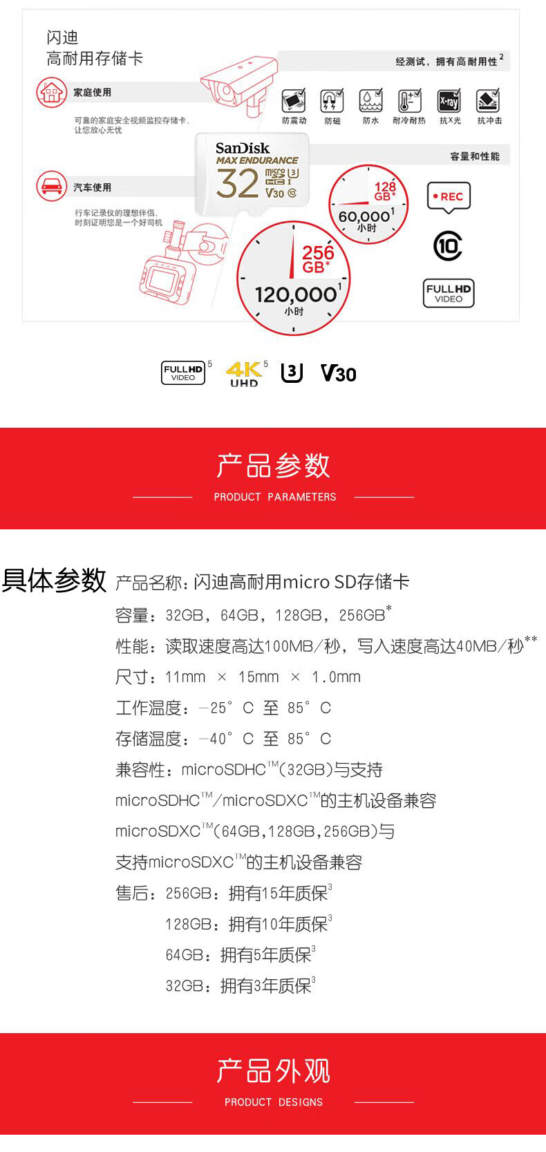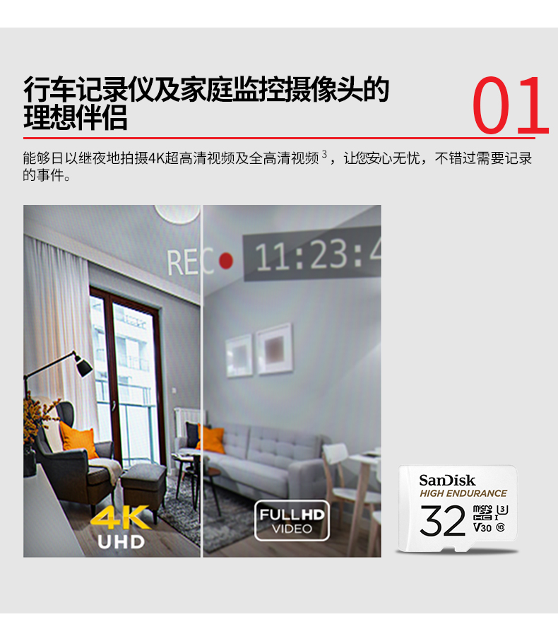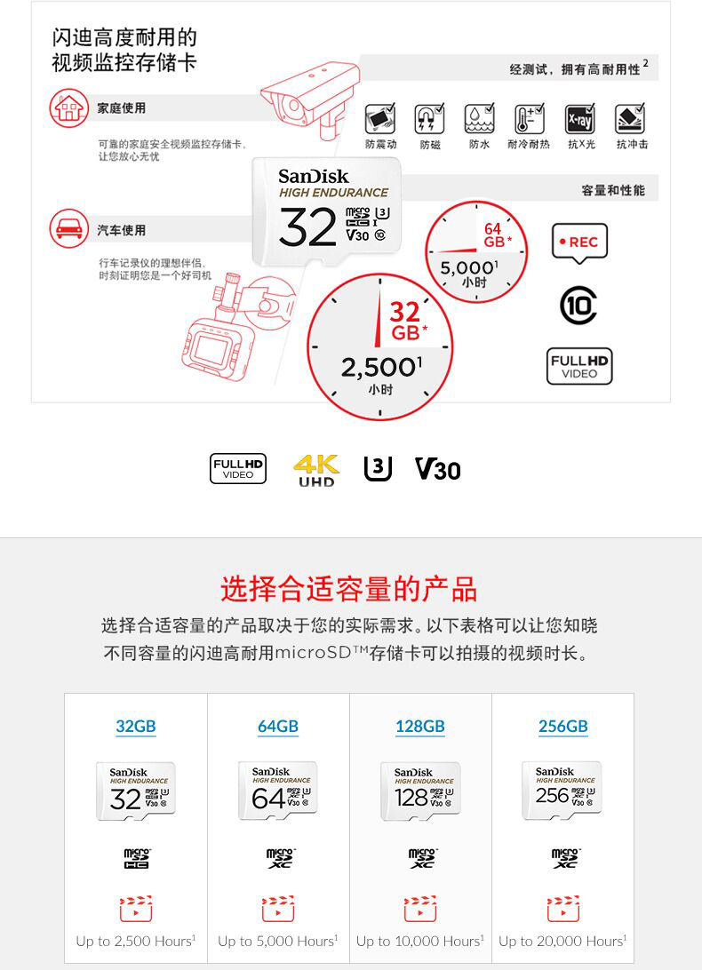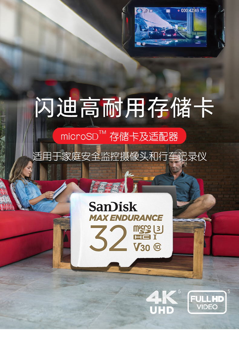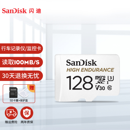 自營閃迪 128GB TF(MicroSD)存儲卡 行車記錄儀&安防監(jiān)控專用內(nèi)存卡 高度耐用 家庭監(jiān)控 讀速100MB/S