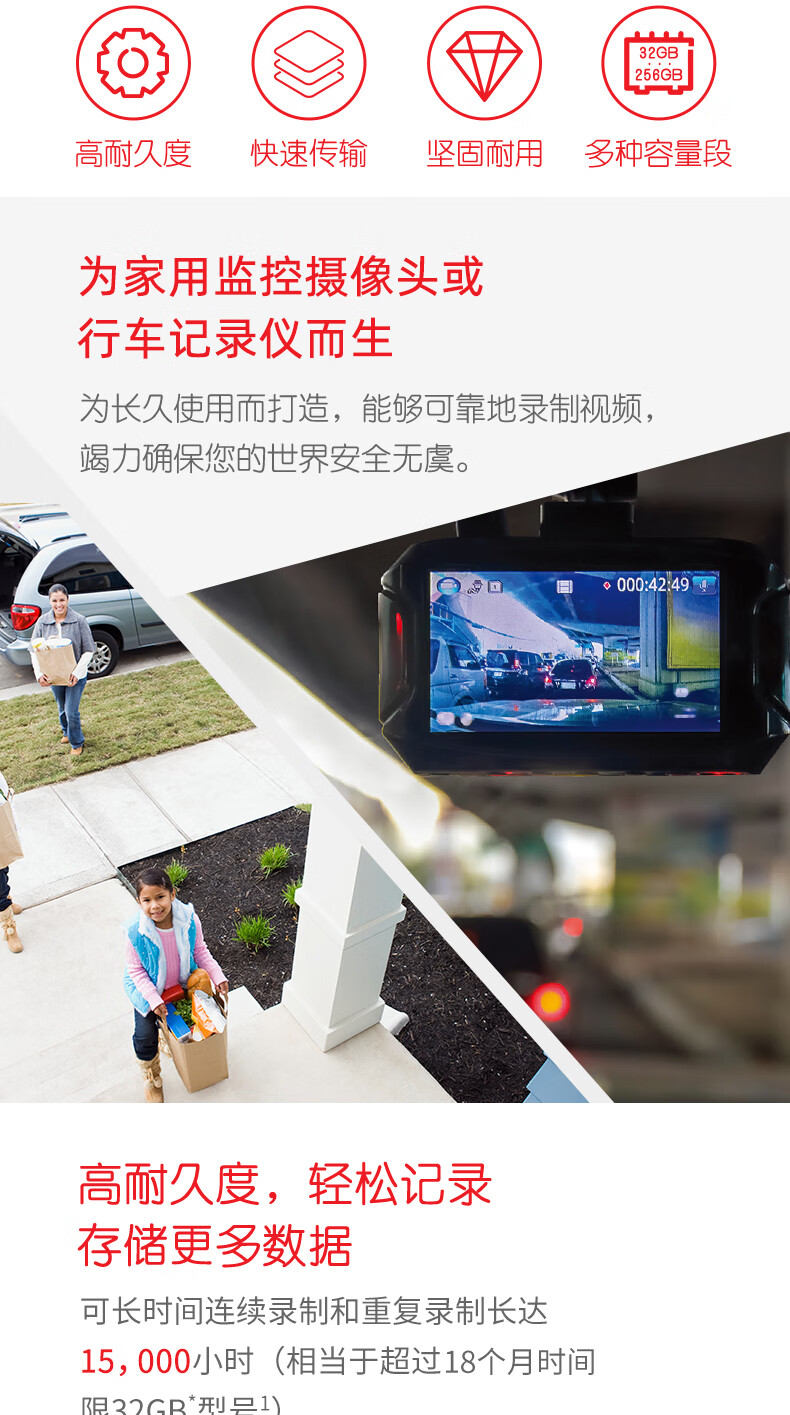 商品名稱:閃迪 128GB TF(MicroSD)存儲卡 行車記錄儀&安防監(jiān)控專用內(nèi)存卡 高度耐用 家庭監(jiān)控 讀速100MB/S