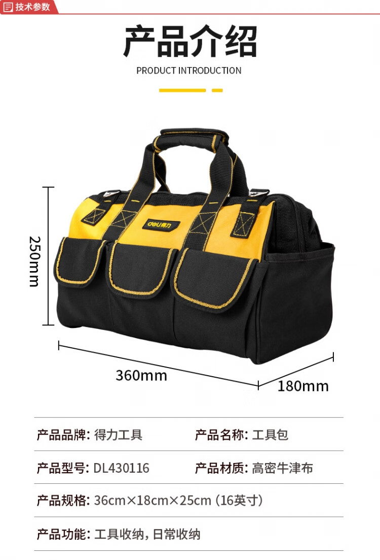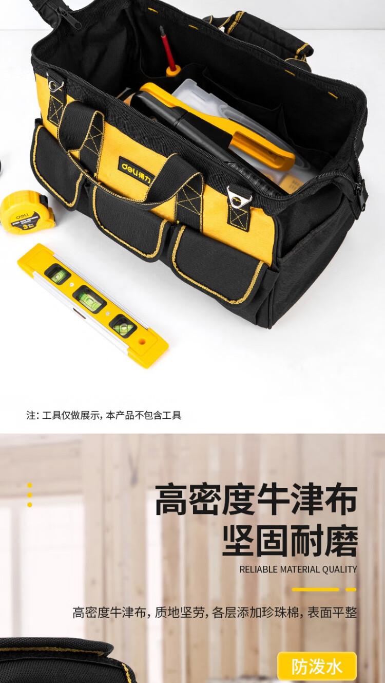 商品名稱:得力DL430116 工具包 加厚16英寸電工五金維修帆布工具包