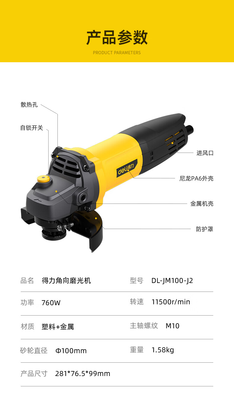 商品名稱:得力DL-JM100-J2 角磨機(jī) 打磨機(jī)切割機(jī)家用工業(yè)磨光機(jī)拋光機(jī)手磨機(jī)電動(dòng)工具箱套裝