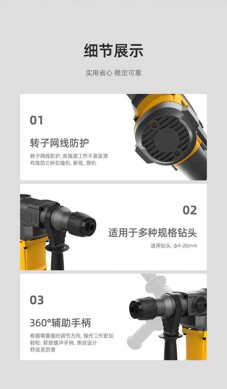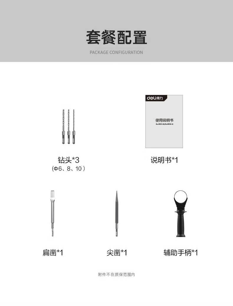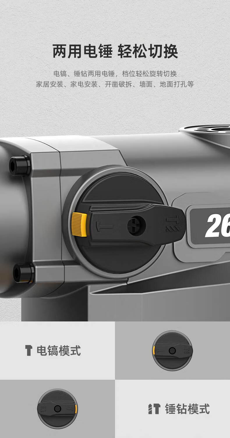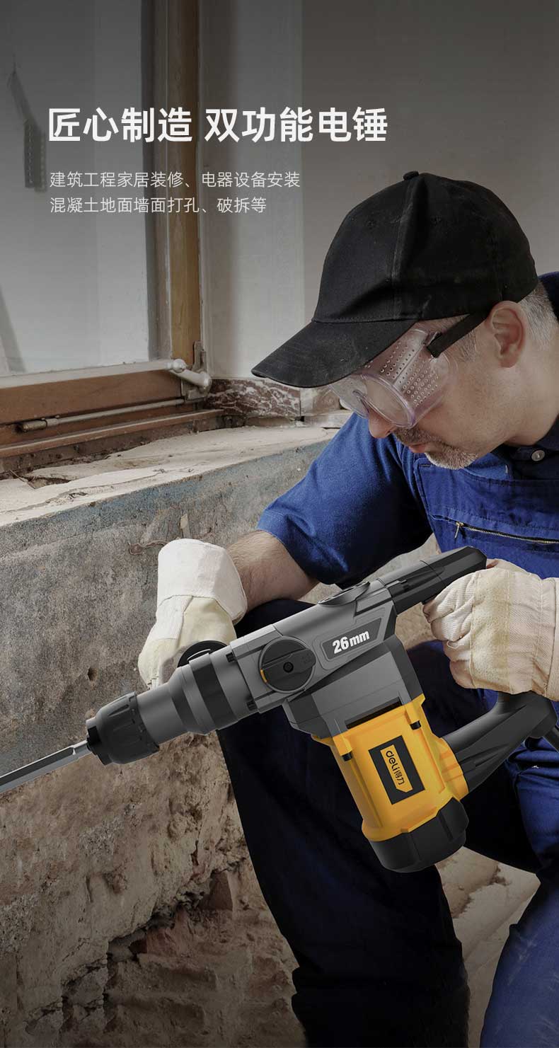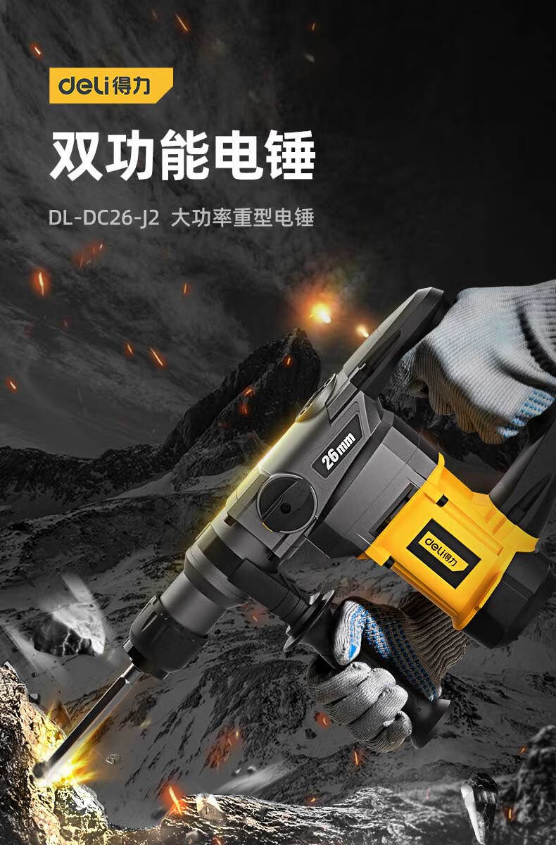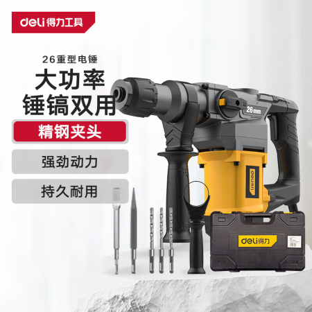 商品名稱:得力DL-DC26-J2 雙功能重型電錘大功率沖擊鉆 多功能電鉆錘鎬兩用混凝土開鑿套裝