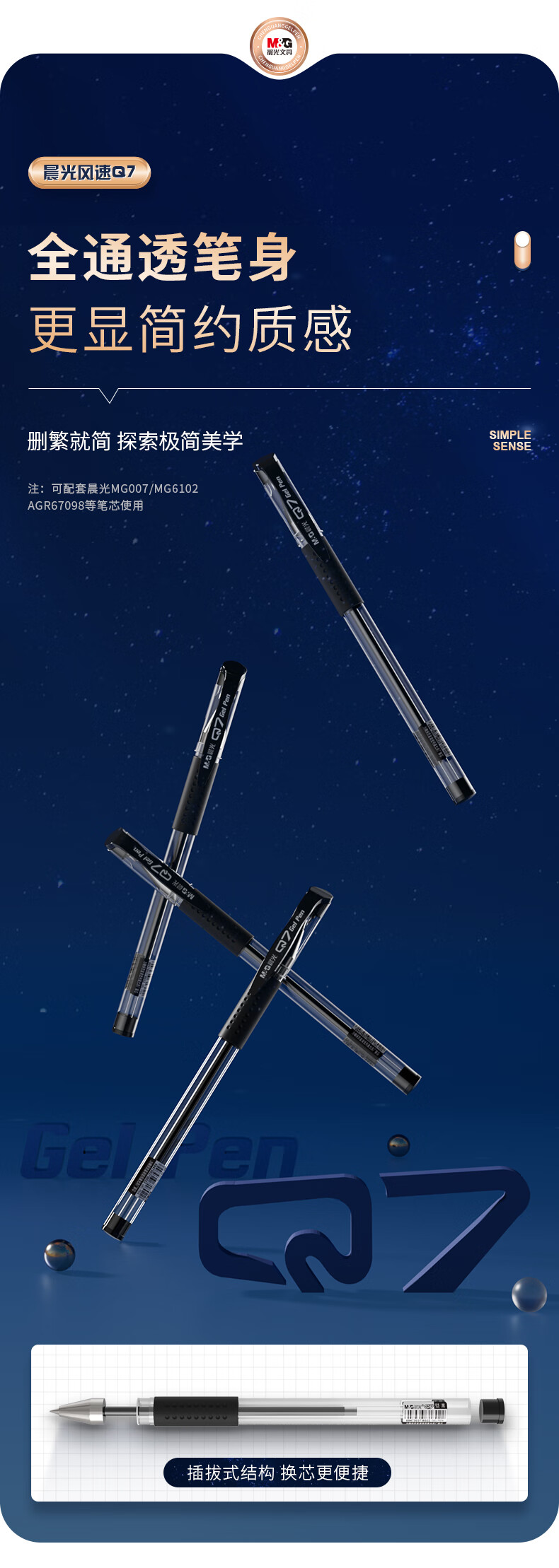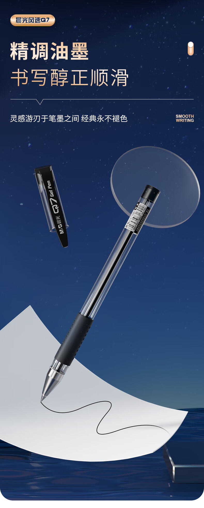 商品名稱:晨光 經(jīng)典風速Q7 黑色中性筆 0.7mm子彈頭簽字筆 學生/辦公用筆 拔蓋水筆 12支/盒