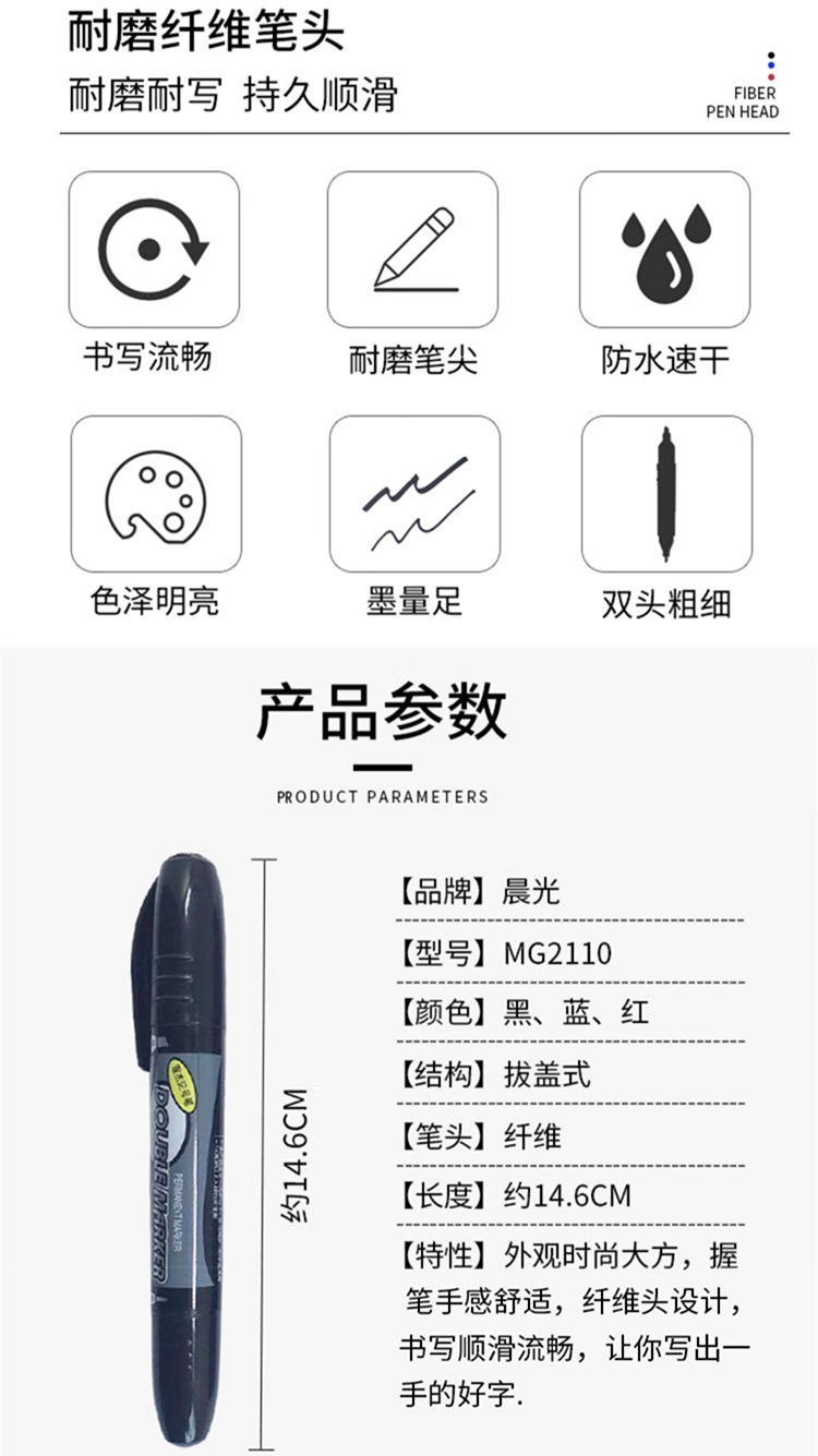 商品名稱:晨光MG2110 雙頭粗桿記號(hào)筆 油性馬克筆 物流筆標(biāo)記大頭筆 12支/盒