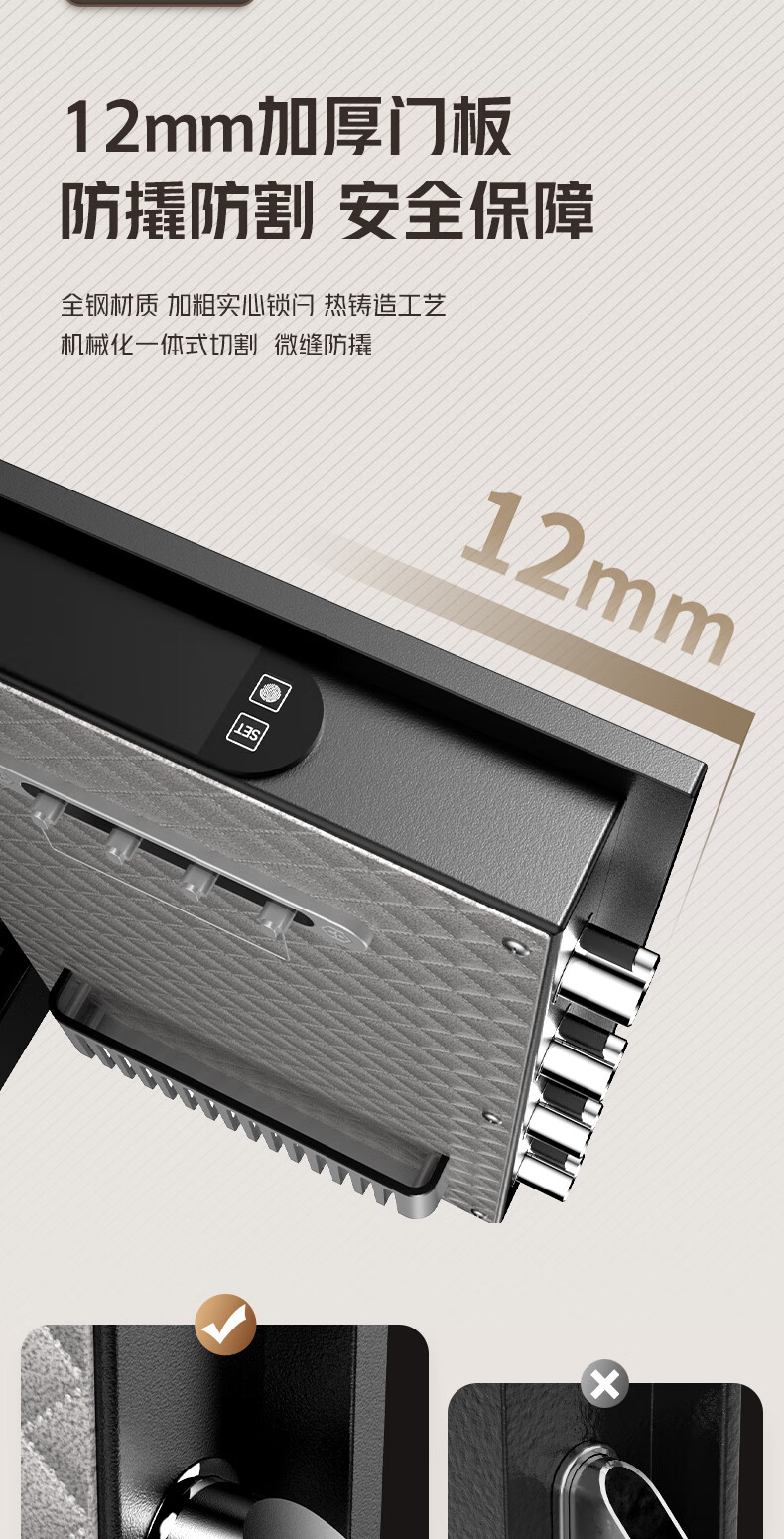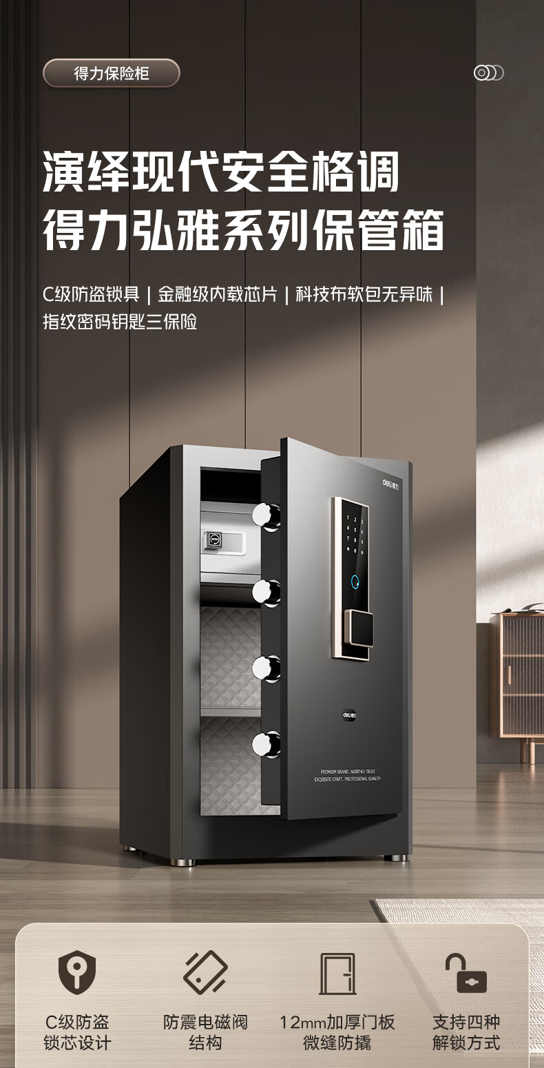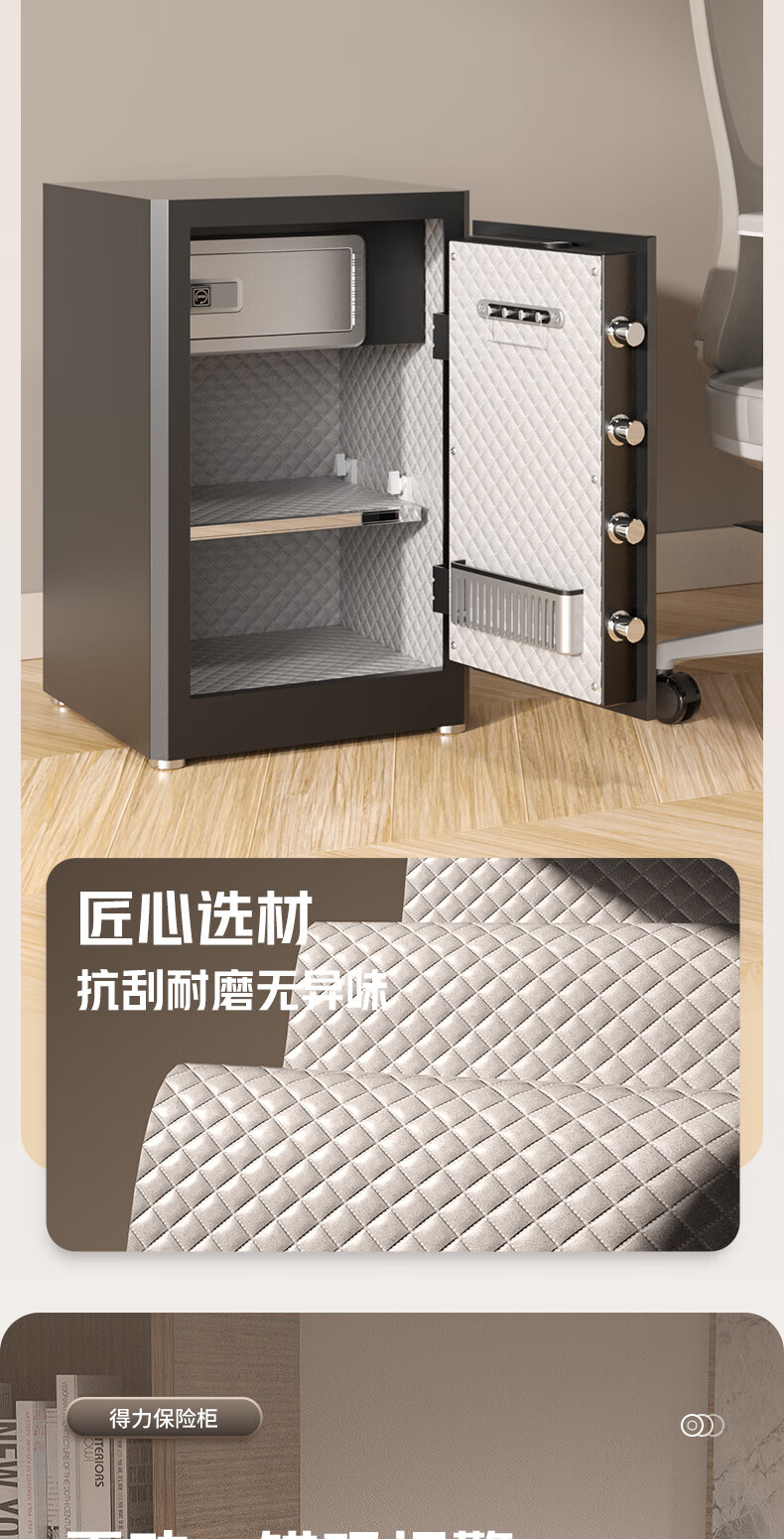 商品名稱:得力AE66-ZM 保險(xiǎn)柜 家用指紋密碼保險(xiǎn)箱辦公小型保密箱可入墻入柜保險(xiǎn)箱床頭保管箱 60cm曜巖黑 弘雅系列
