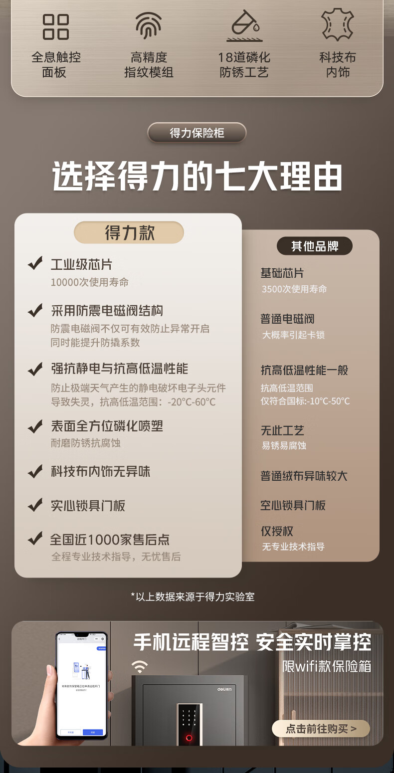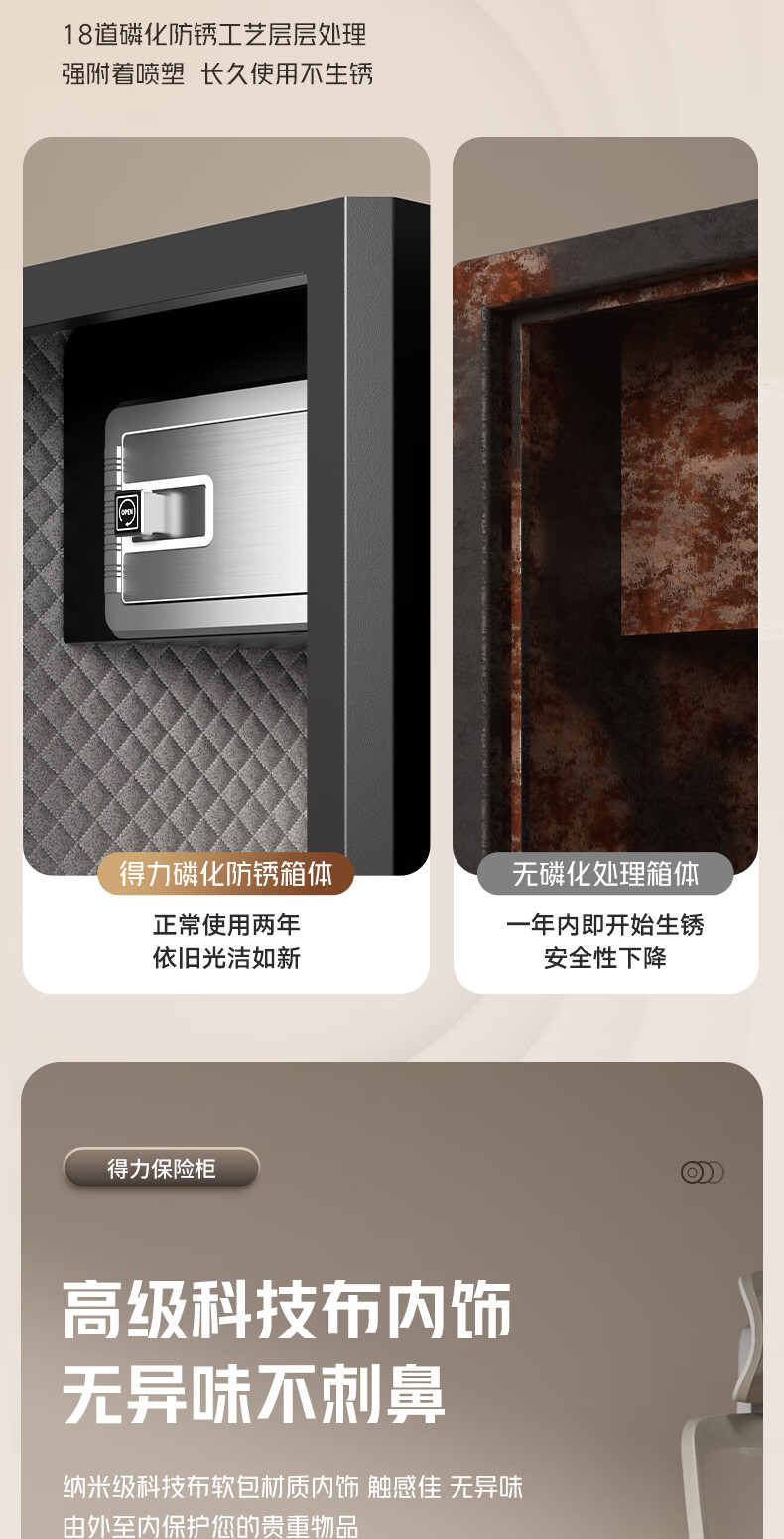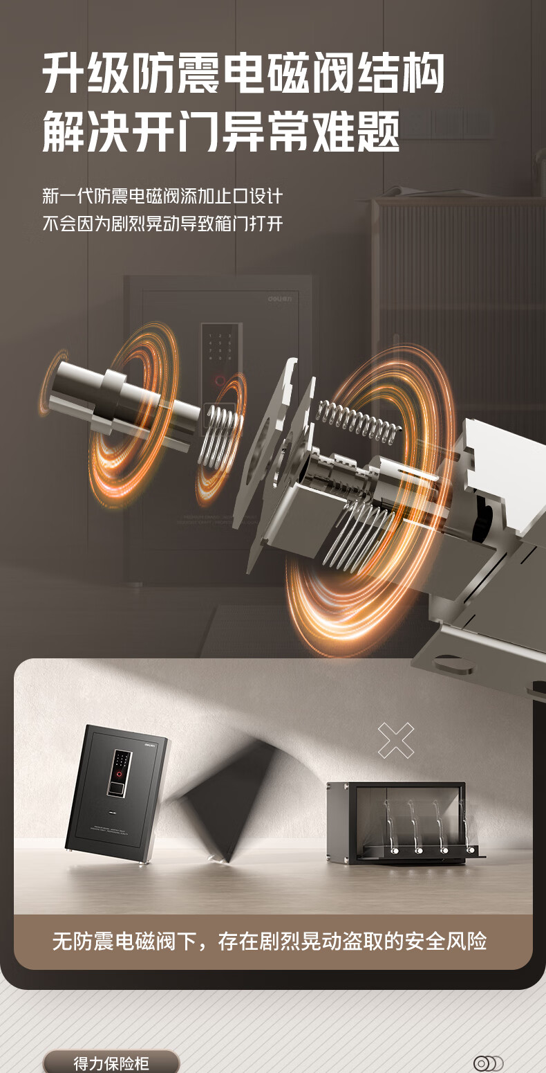 商品名稱:得力AE66-ZM 保險(xiǎn)柜 家用指紋密碼保險(xiǎn)箱辦公小型保密箱可入墻入柜保險(xiǎn)箱床頭保管箱 60cm曜巖黑 弘雅系列