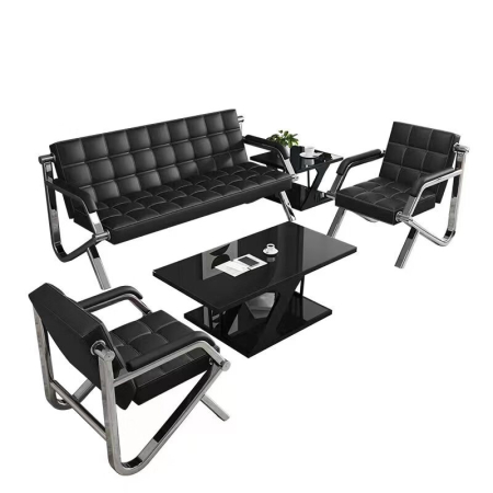 商品名稱(chēng):固業(yè)家具 沙發(fā)茶幾組合 簡(jiǎn)約接待室會(huì)客公共區(qū)小型三人位不銹鋼沙 1+1+3黑色
