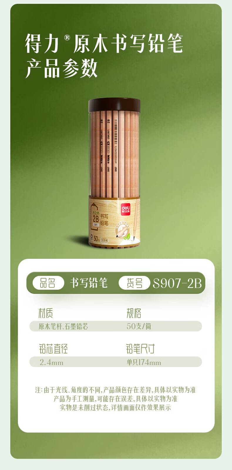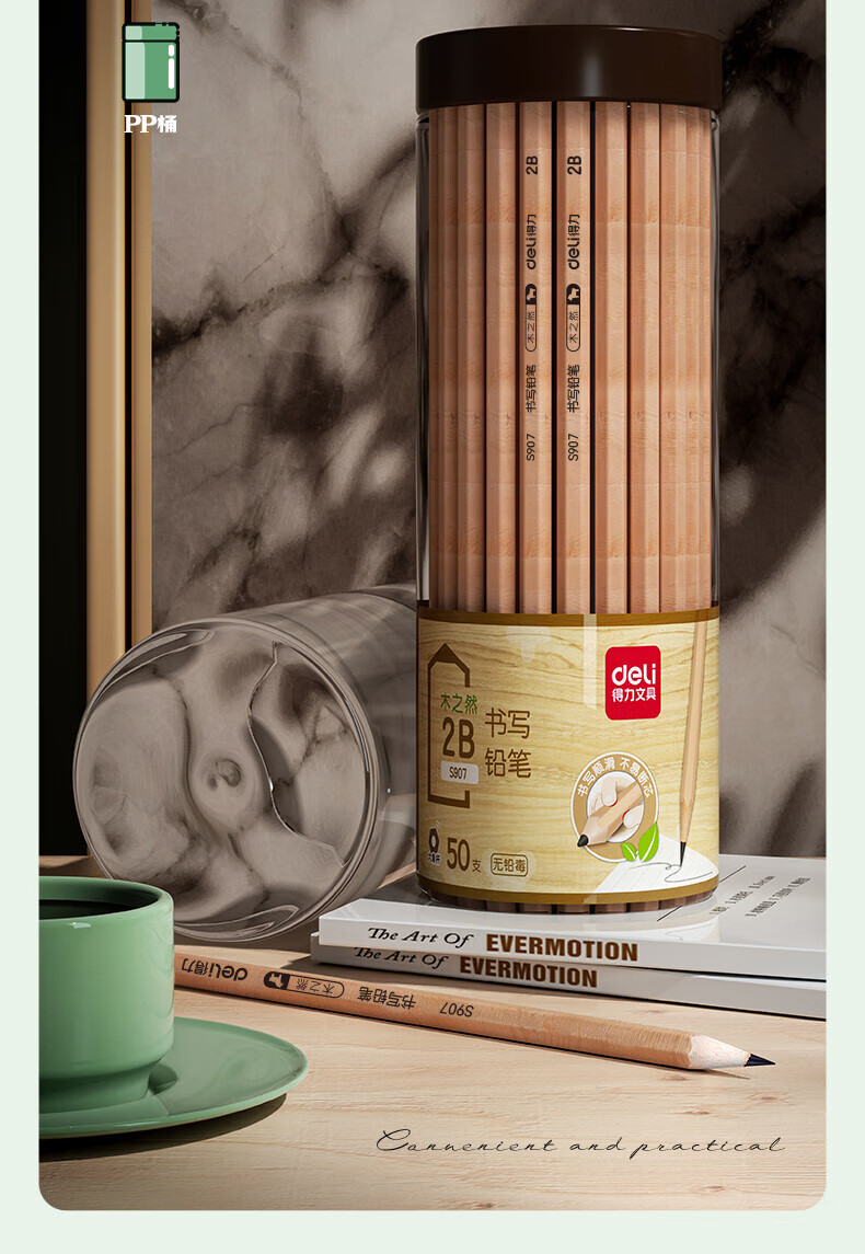 商品名稱:得力S907 原木鉛筆 木之然系列六角筆桿2B鉛筆/考試專用學(xué)生鉛筆 50支/桶