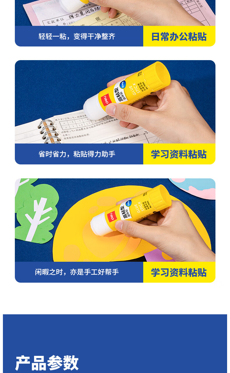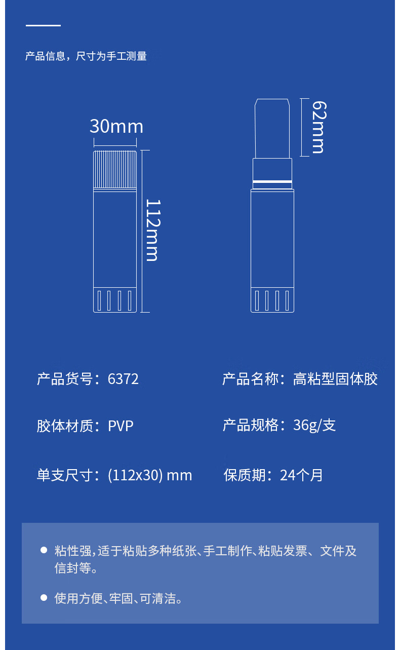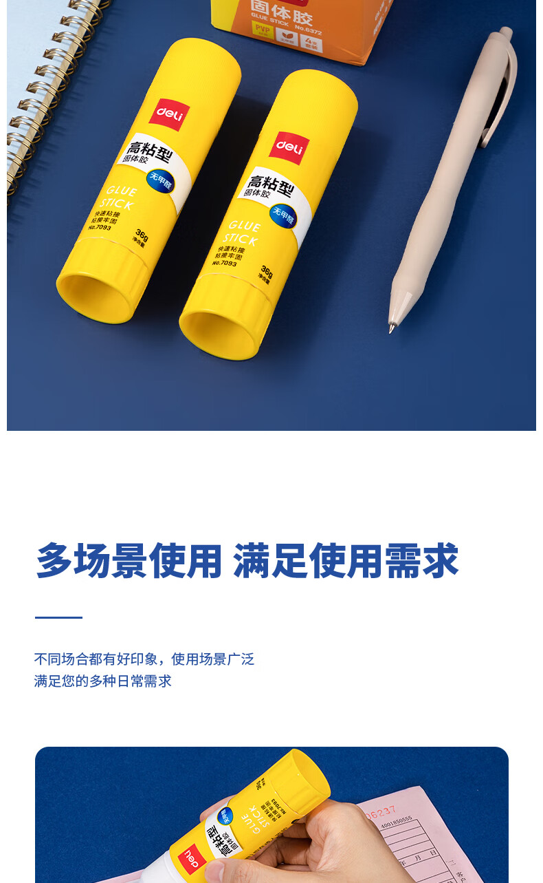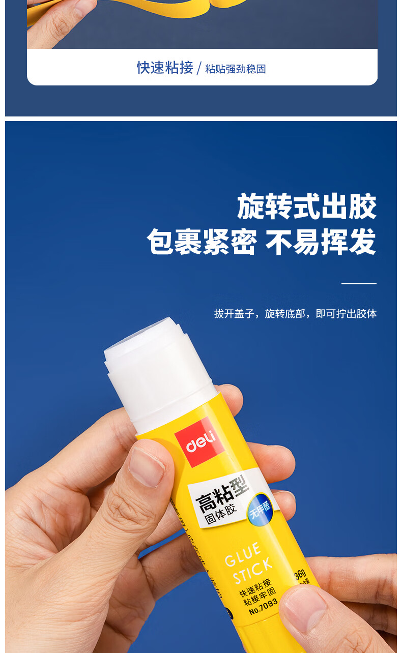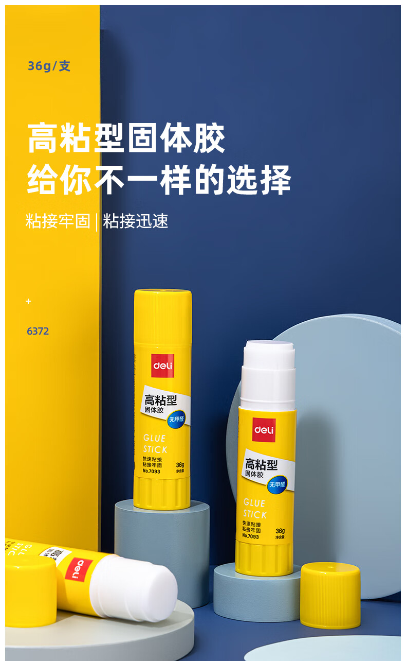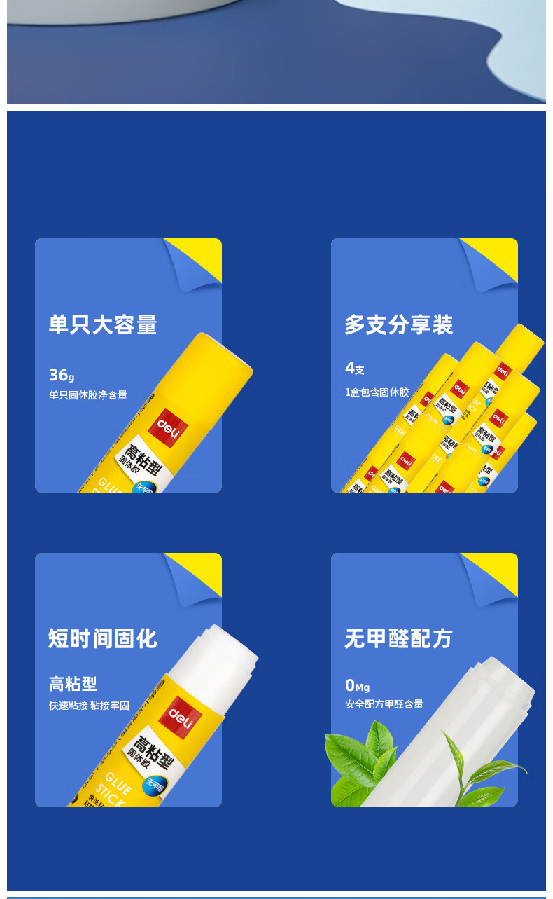 商品名稱:得力6372 固體膠水 36g高粘度PVP無甲醛快干耐用膠棒 4支裝 辦公用品