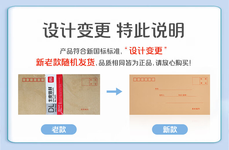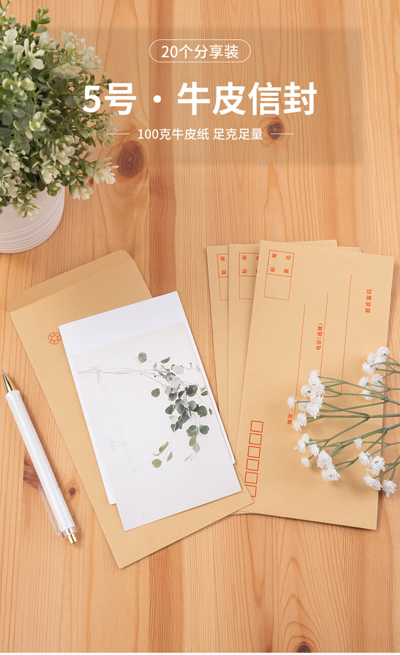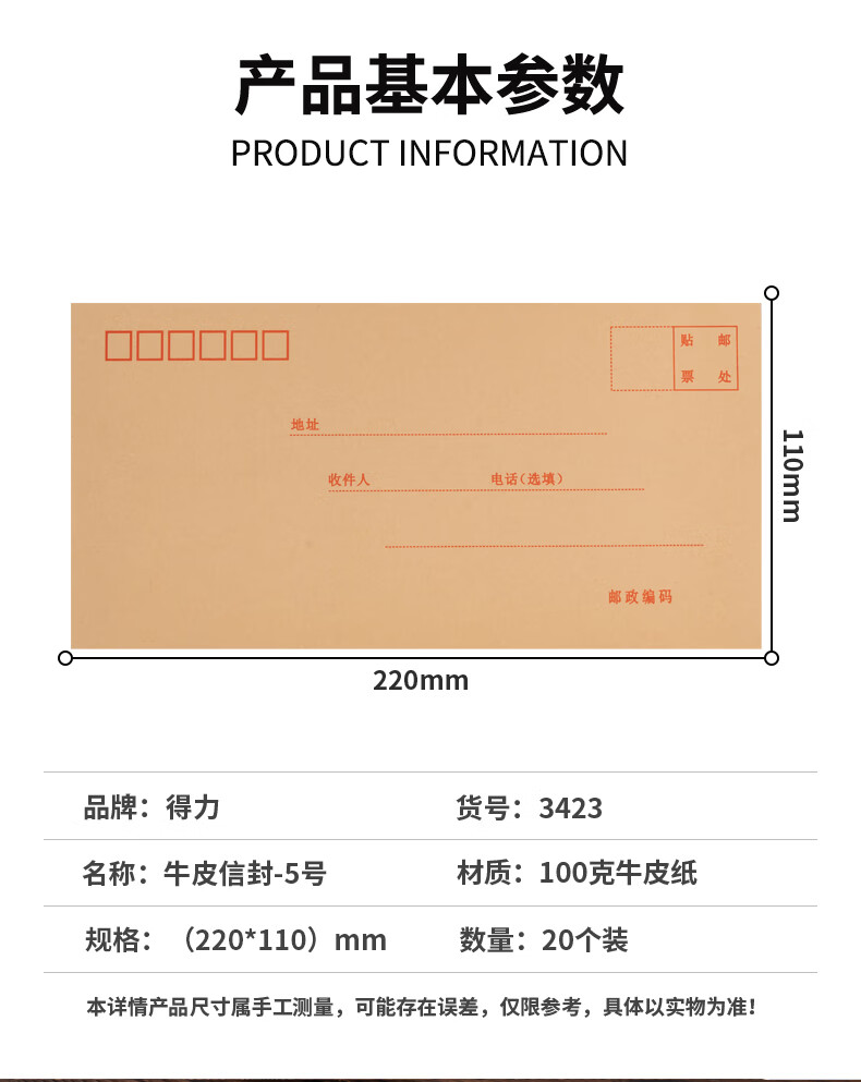商品名稱:得力3423 牛皮紙信封 5號(hào)郵局標(biāo)準(zhǔn)信封220*110mm 20張/包