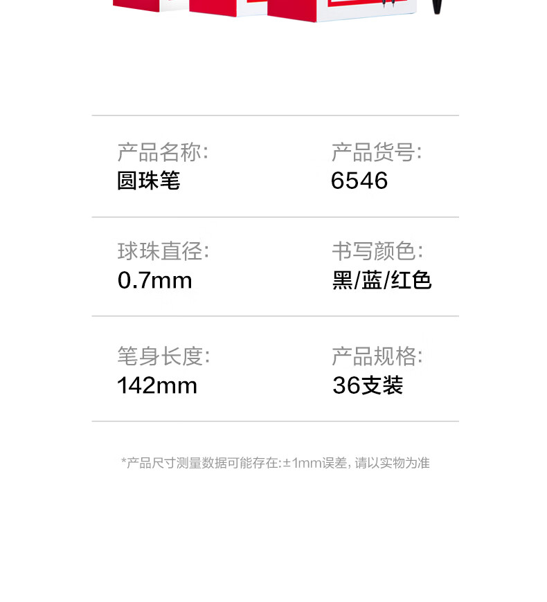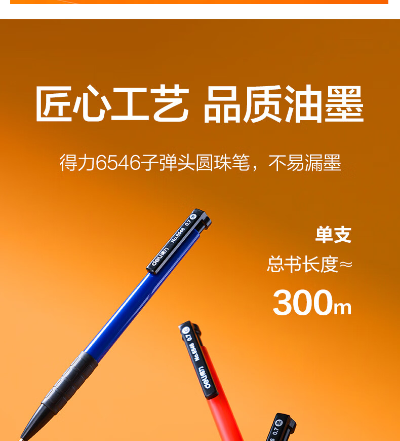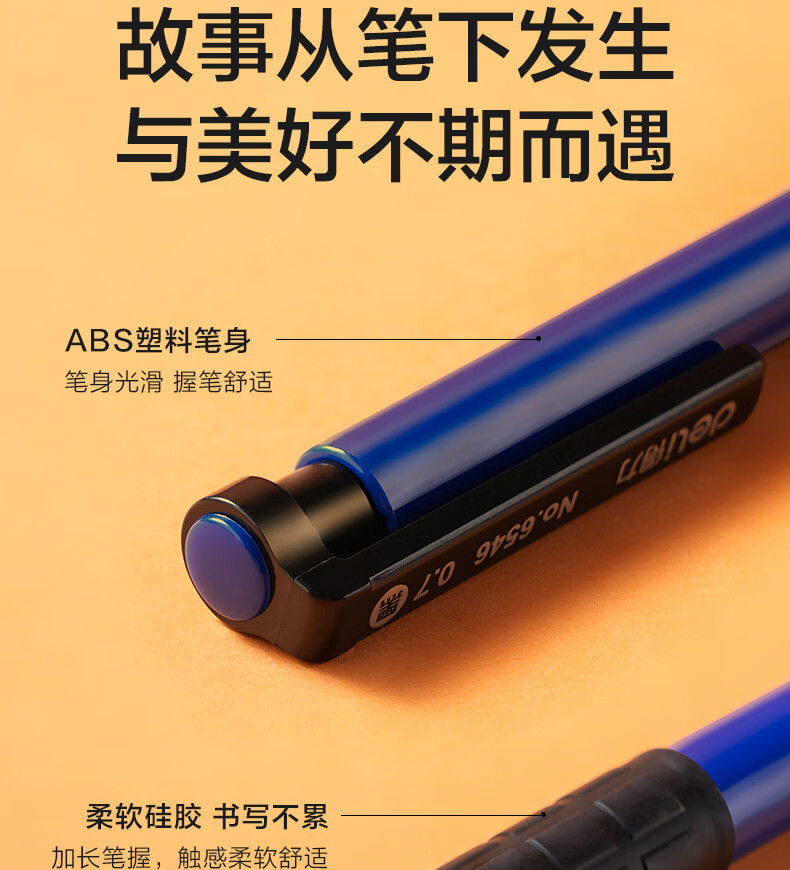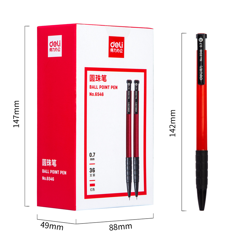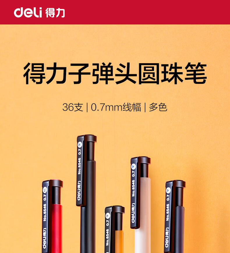 商品名稱(chēng):得力6546 圓珠筆 中油筆 0.7mm子彈頭軟膠握手原子筆按動(dòng)筆 辦公用品 36支/盒