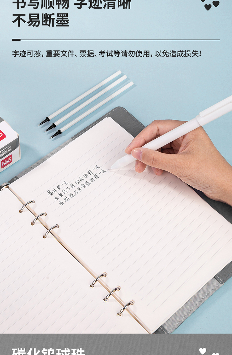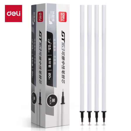 商品名稱:得力GT163 可擦中性筆芯 0.5mm全針管拔帽簽字筆水筆替芯 黑色 20支/盒