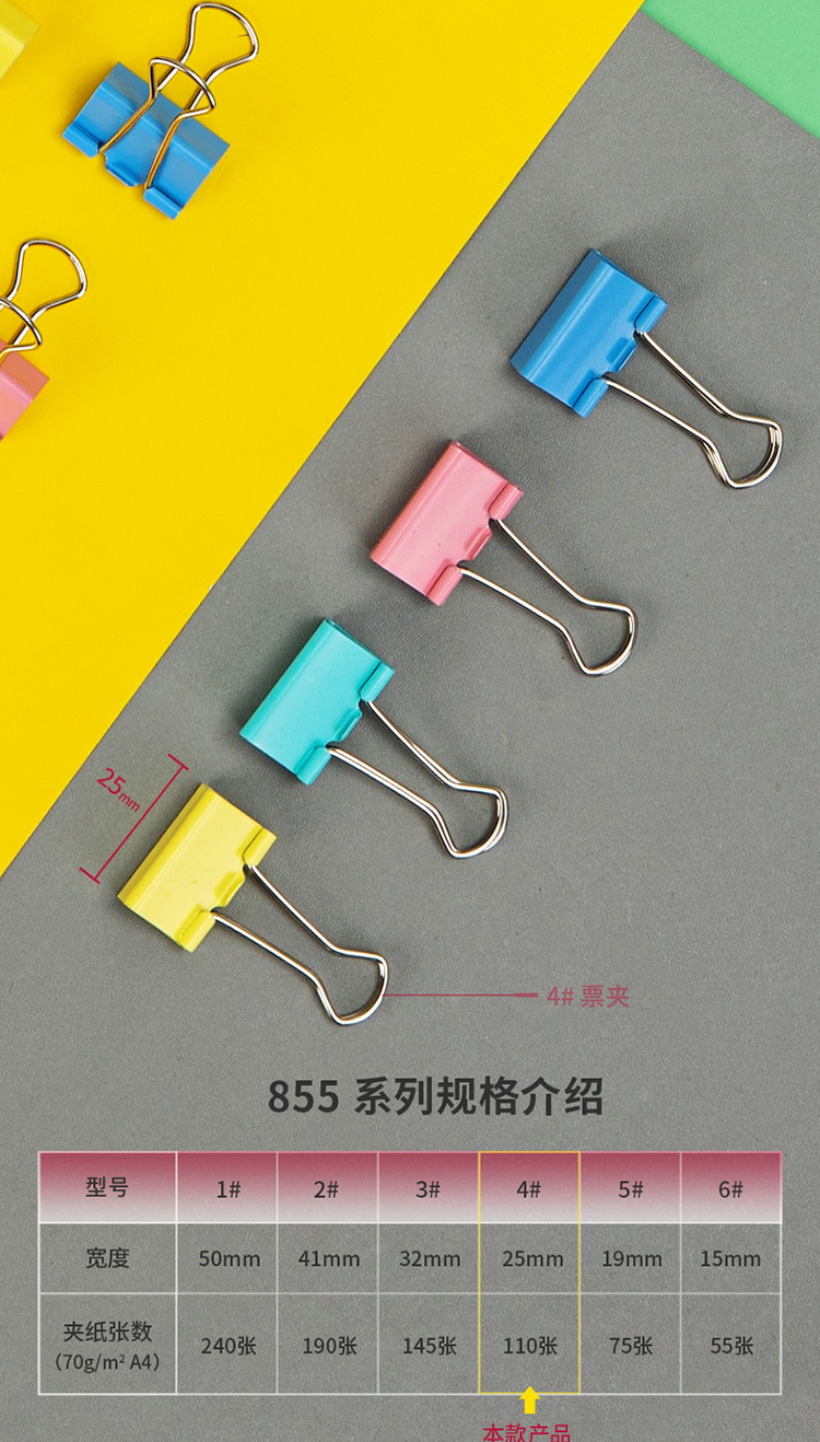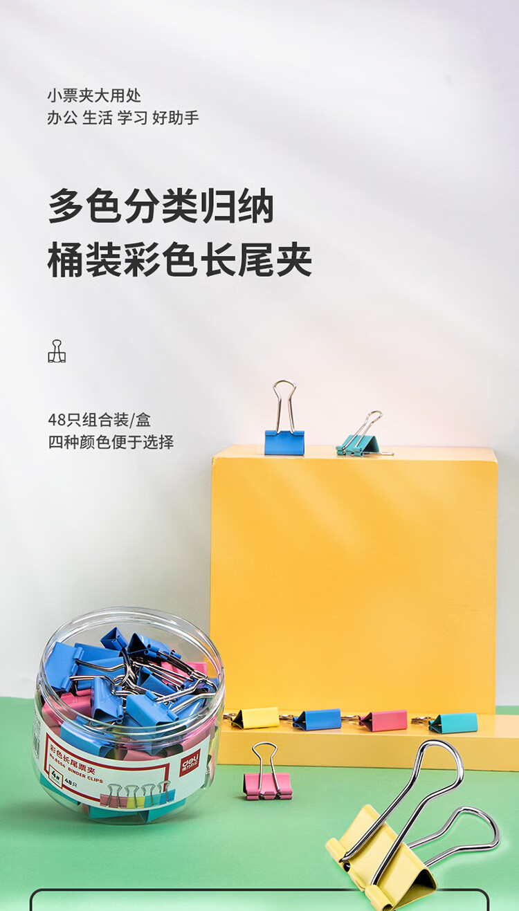 商品名稱:得力8554 彩色長尾夾 4#25mm中號金屬燕尾夾票據(jù)文件夾子 辦公用品 48只/筒