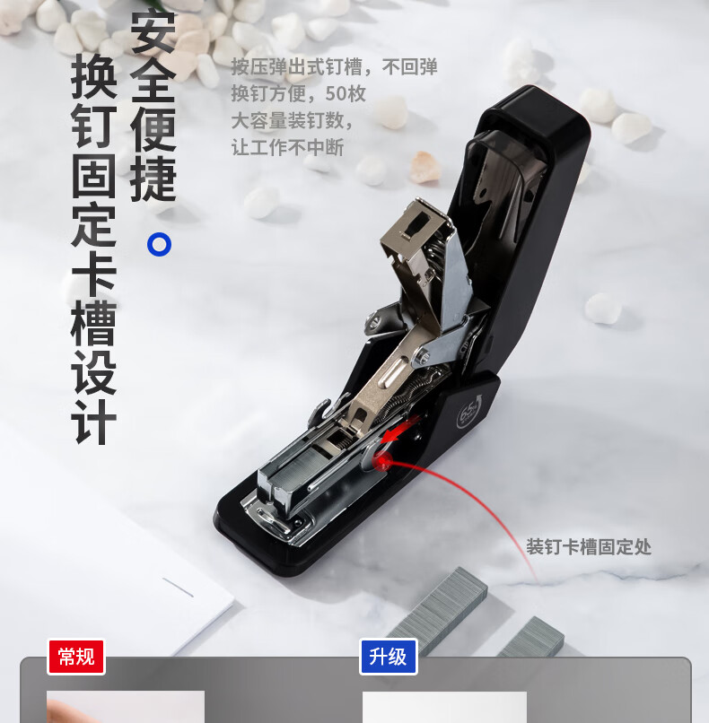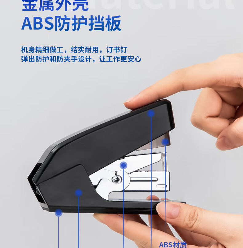 商品名稱:得力0466 省力訂書(shū)機(jī) 適配12#訂書(shū)釘 黑色 單位:個(gè)