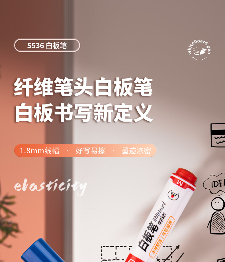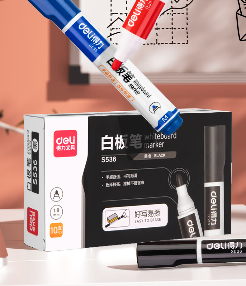 商品名稱:得力S536 白板筆 可擦易擦?xí)鴮戫樆?10支/盒