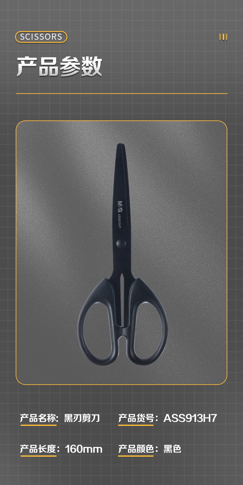 商品名稱(chēng):晨光ASS913H7 黑刃剪刀 160mm不銹鋼刀刃不易粘膠耐用剪刀 單把裝