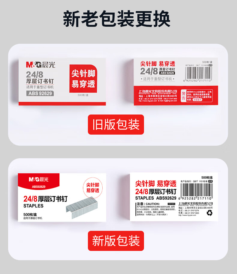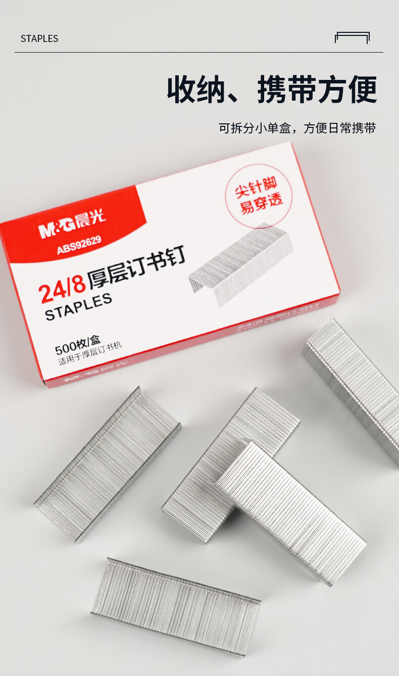 商品名稱:晨光ABS92629 訂書釘 24/8號厚層易穿透訂書針 辦公用品 500枚/盒 單盒裝