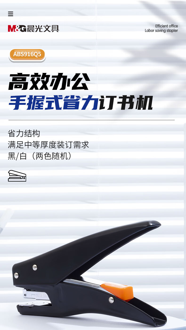 商品名稱:晨光ABS916Q5 12#訂書機(jī) 手握式彈出式省力訂書器 小型辦公用品 單個(gè)裝 顏色隨機(jī)