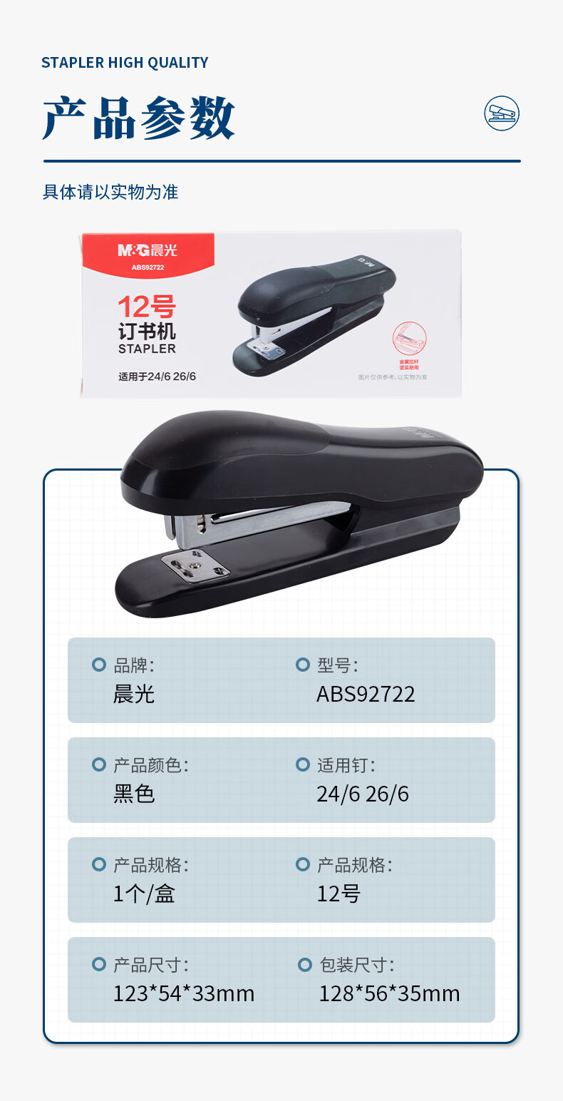 商品名稱:晨光ABS92722 12#訂書機(jī) 耐用便攜訂書器 辦公用品 單個(gè)裝