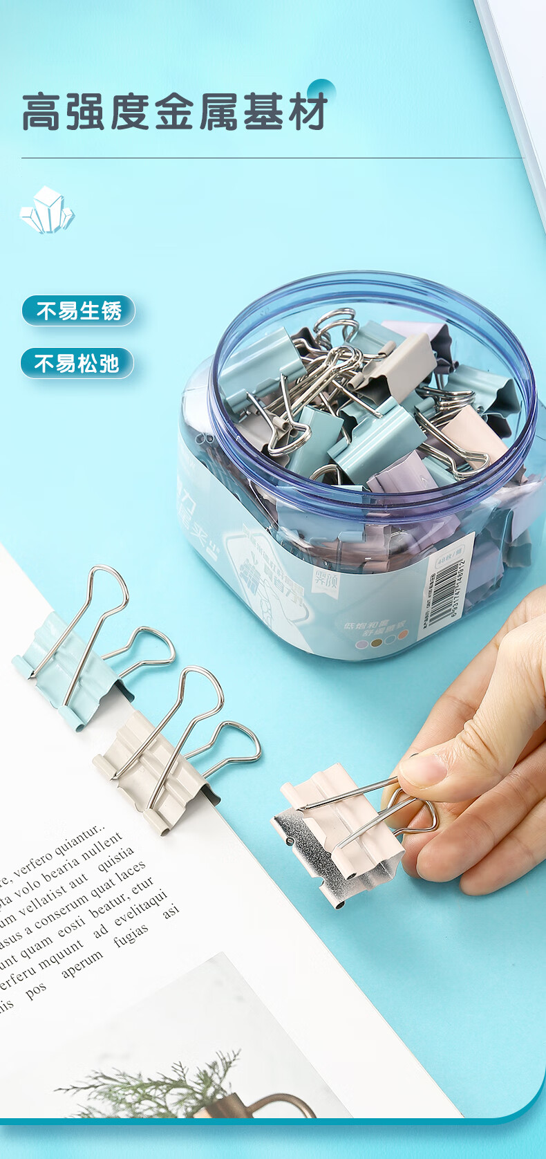 商品名稱:晨光ABS916Y9 省力長尾夾 5#19mm彩色金屬燕尾夾 莫蘭迪系列票據(jù)夾子 40只/筒