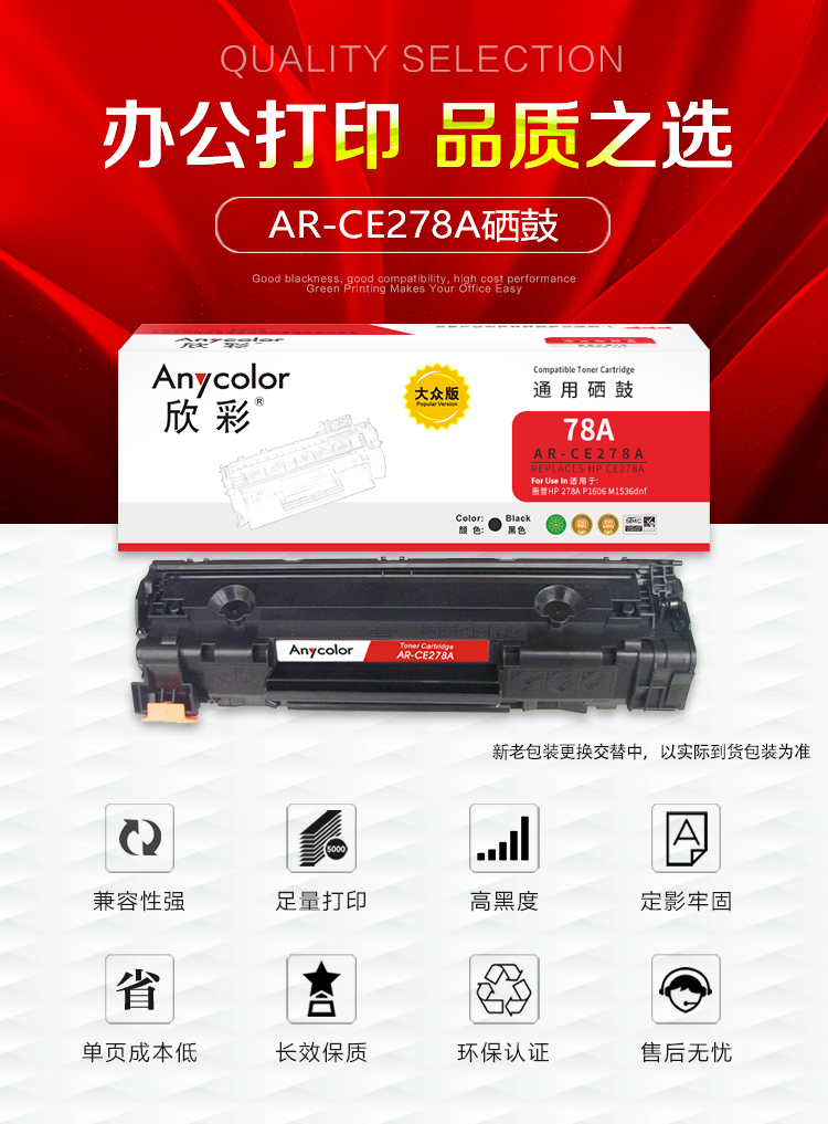 商品名稱:欣彩AR-CE278A硒鼓 大眾版 適用惠普HP CE278A 78A P1566 P1606dn P1506 P1560 M1536dnf激光打印機