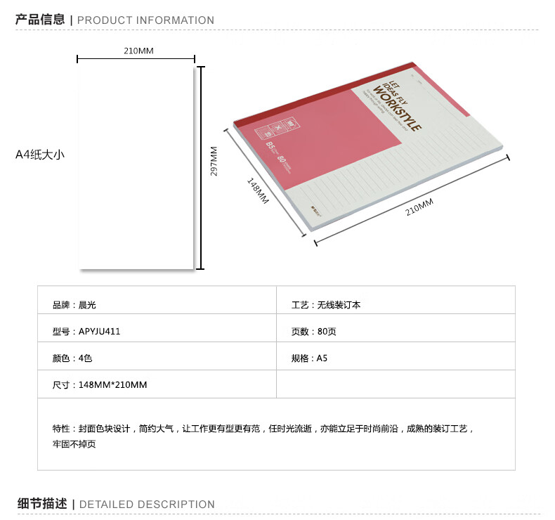 商品名稱:晨光APYJU411 軟抄本 A5/80頁無線裝訂本記事本筆記本單線本 顏色隨機(jī) 單本裝