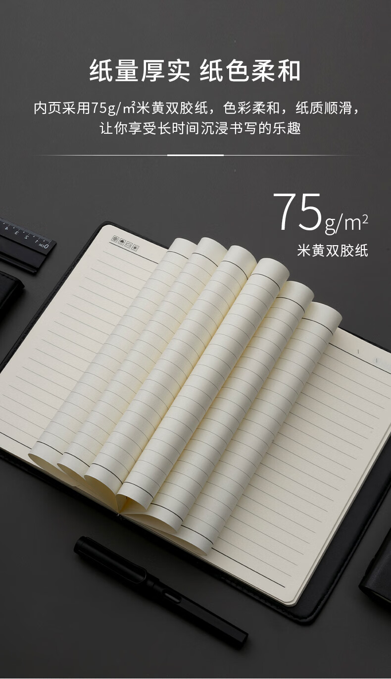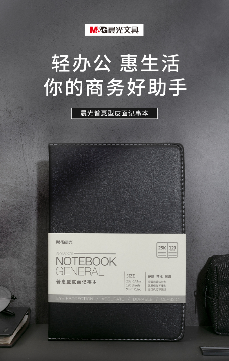 商品名稱:晨光APYD2K78 筆記本 A5/25K會議記錄皮面本120張黑色記事本 單本裝