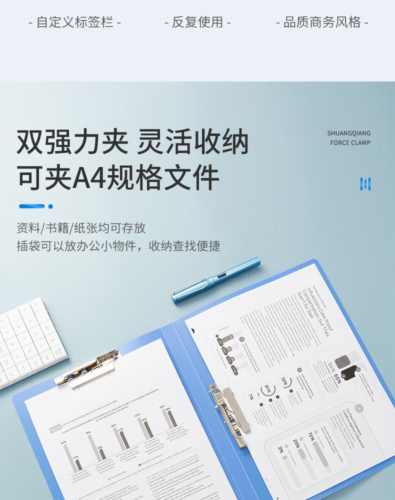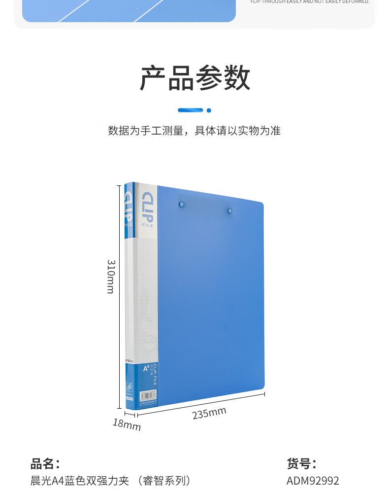 商品名稱:晨光ADM92992 文件夾 A4藍色雙強力夾 睿智系列辦公資料夾 單個裝