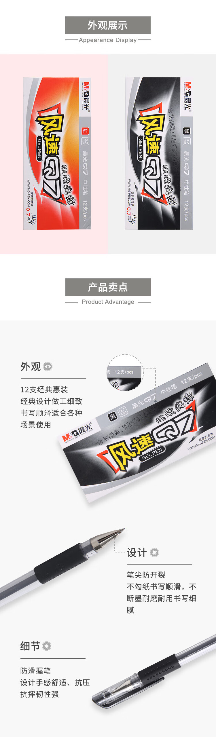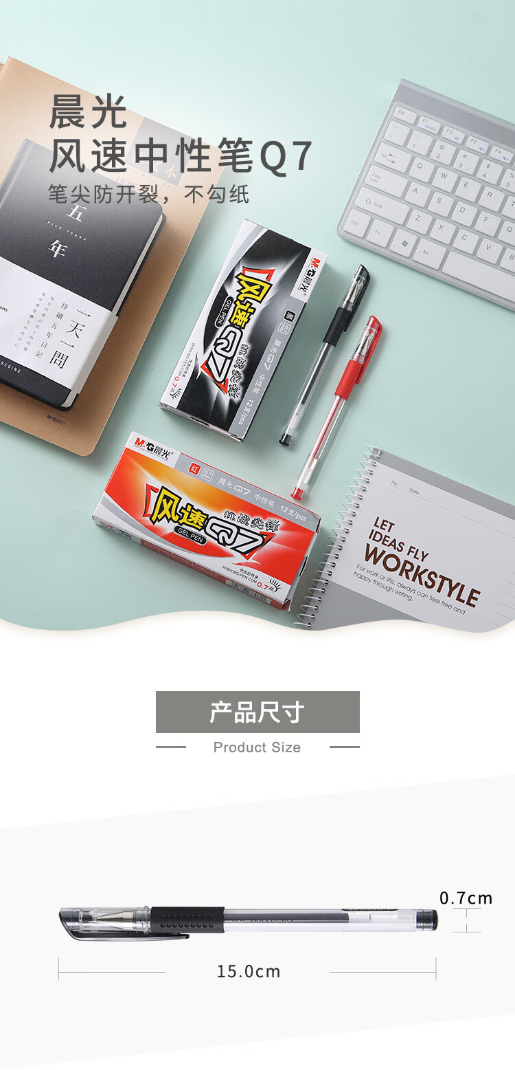 商品名稱:晨光AGP30105 風速Q7黑色中性筆 0.7mm拔蓋款會議筆簽字筆水筆 12支/盒