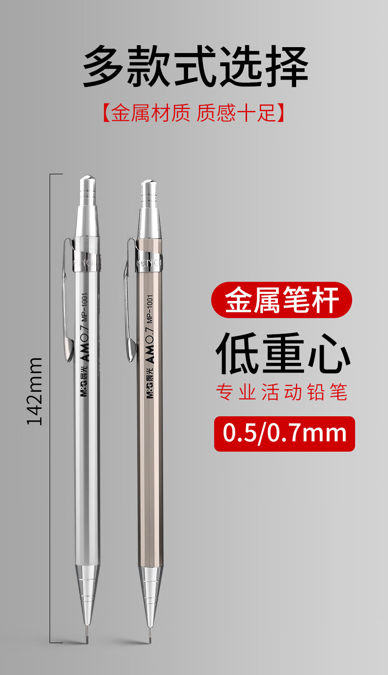 商品名稱:晨光MP1001 鐵桿自動鉛筆 0.7簡約經(jīng)典金屬自動鉛筆不易斷芯黑 單支裝