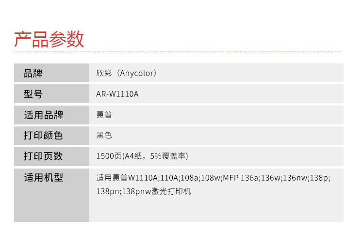 商品名稱:欣彩AR-W1110A硒鼓 大眾版帶芯片1.5K 適用惠普W1110A 110A 108a 108w MFP 136a 136w 136nw 138p激光打印機(jī)