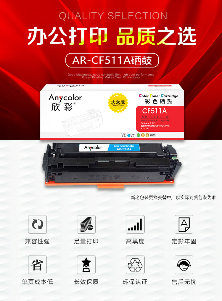 商品名稱:欣彩AR-CF511A藍色硒鼓 大眾版 適用惠普CF511A 204A M154a M154nw MFP M180 M180n M180nw M181