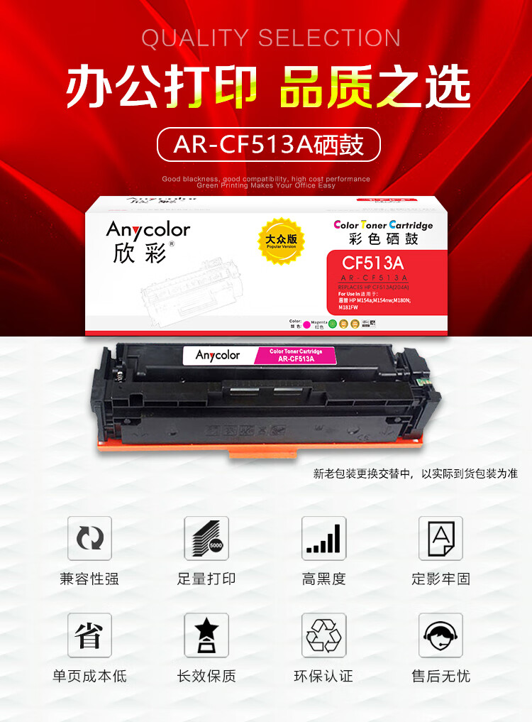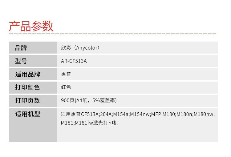 商品名稱:欣彩AR-CF513A紅色硒鼓 大眾版 適用惠普CF513A 204A M154a M154nw MFP M180 M180n M180nw M181激光打印機(jī)