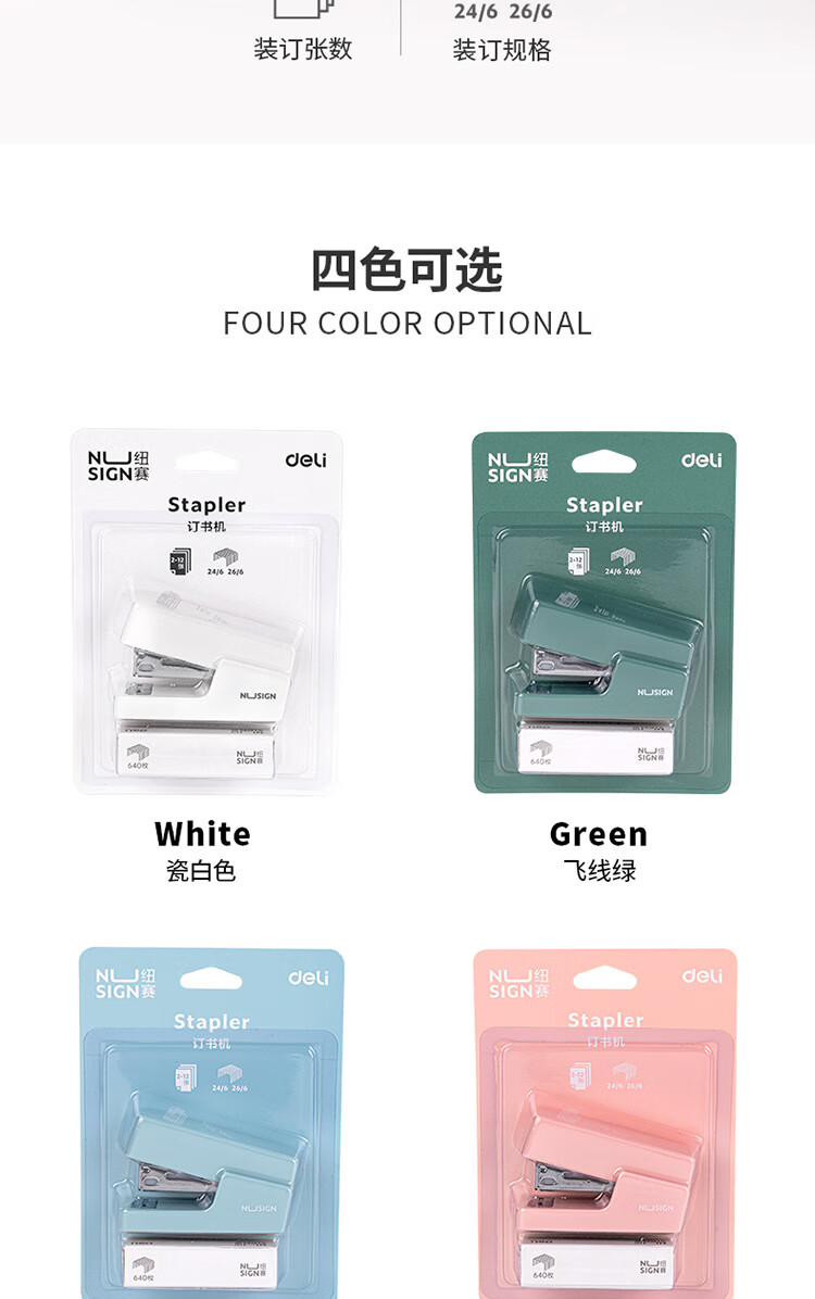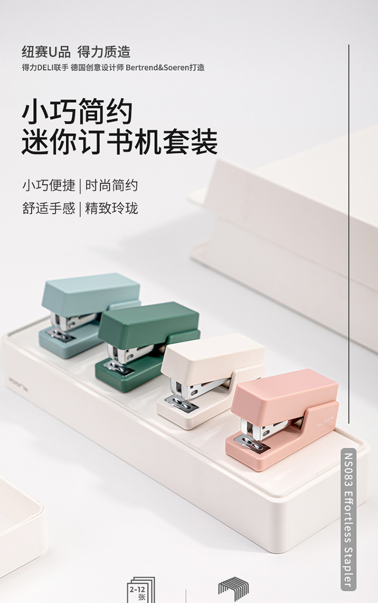 商品名稱:得力NS083 紐賽迷你小號(hào)訂書(shū)機(jī)(裝訂機(jī)+訂書(shū)釘) 顏色隨機(jī)(套)