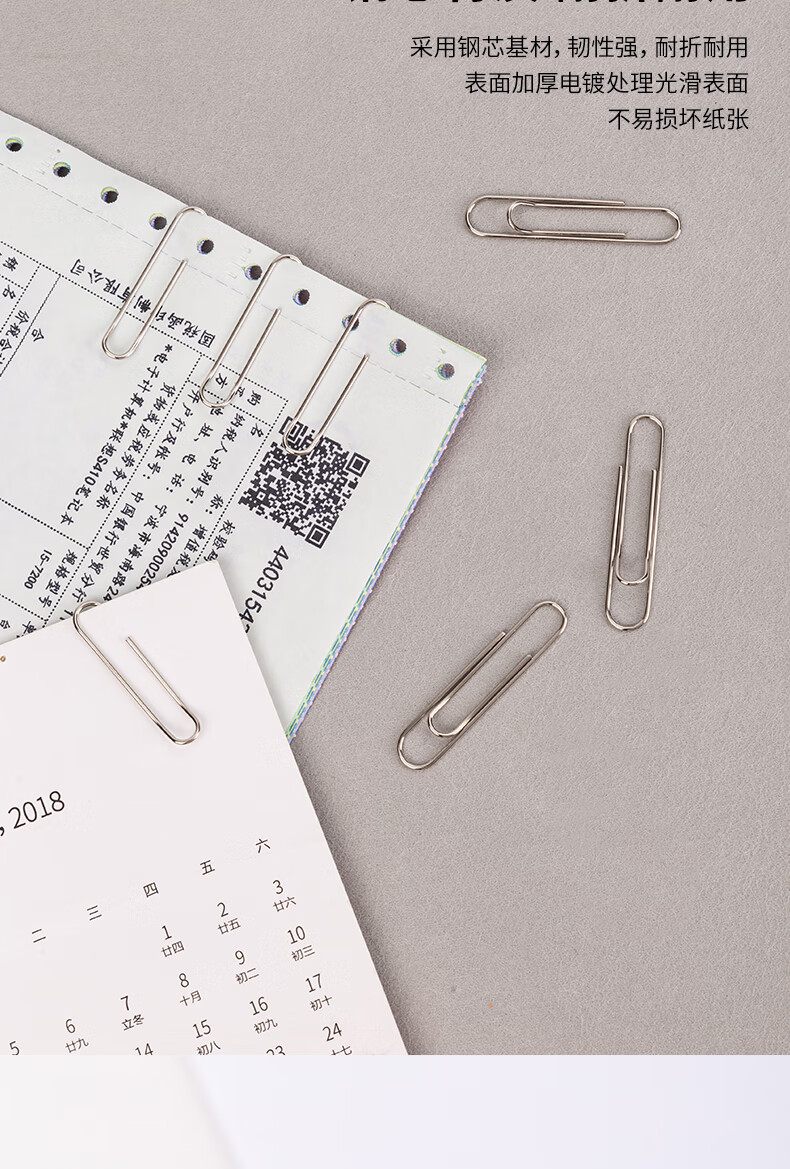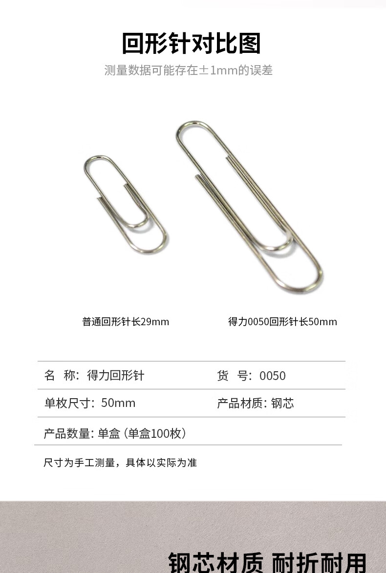 商品名稱:得力0050 回形針 50mm大號電鍍金屬曲別針 辦公用品文件收納 100枚/盒