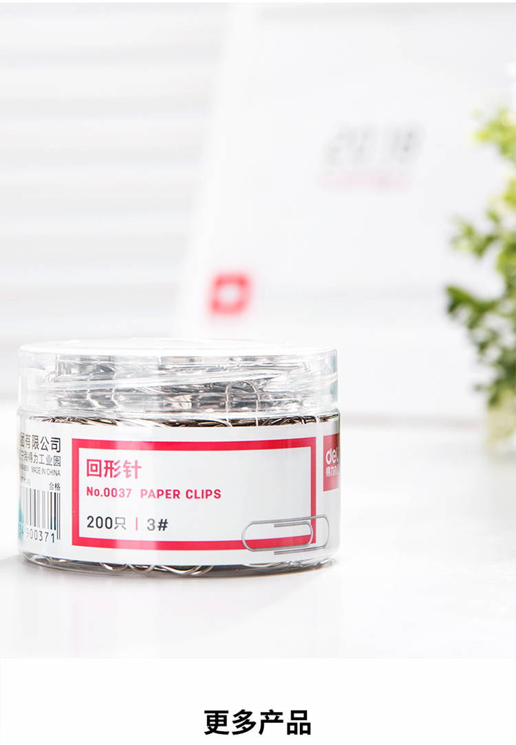 商品名稱:得力0037 鍍鎳回形針 3#29mm金屬防銹曲別針 辦公用品 200枚/筒