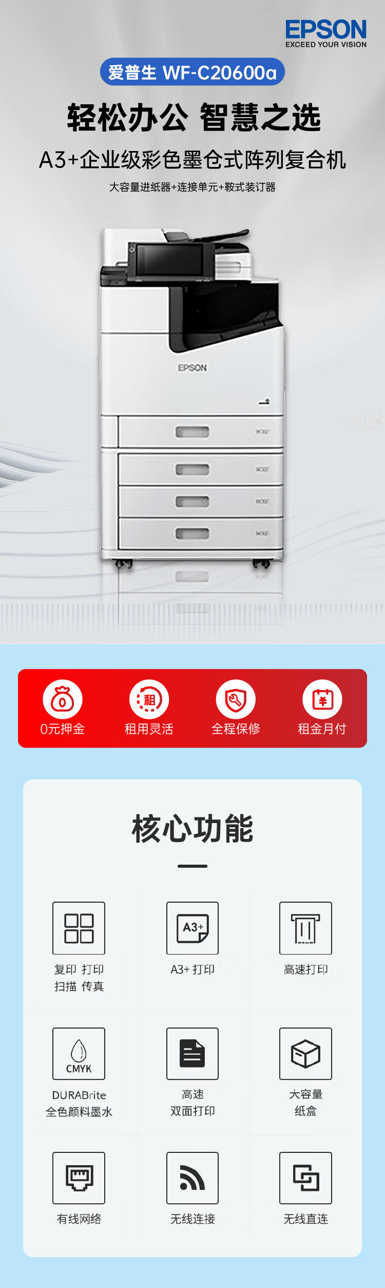 商品名稱(chēng):愛(ài)普生全新復(fù)印機(jī)租賃 茂名出租A3超高速彩色噴墨復(fù)合機(jī)(月)