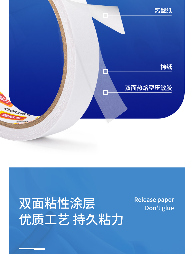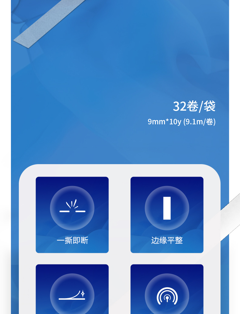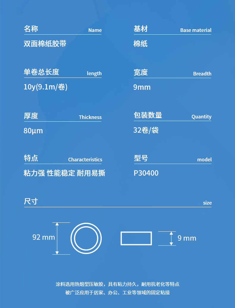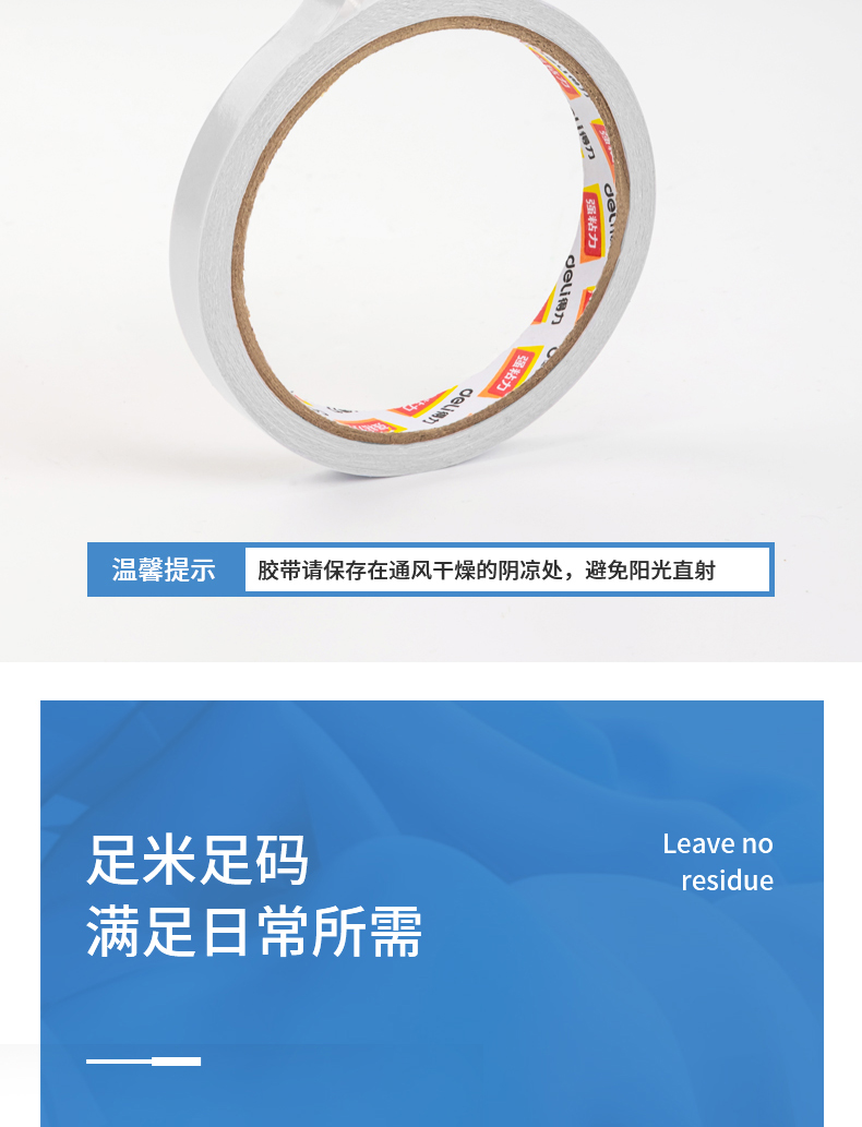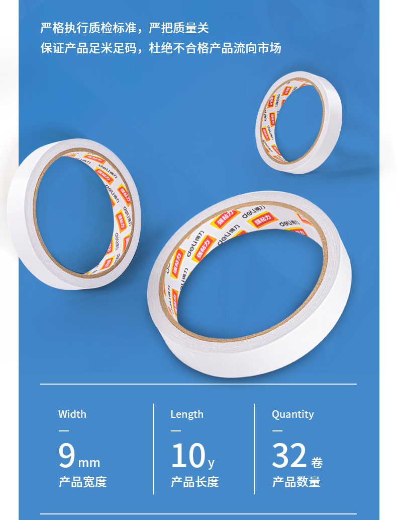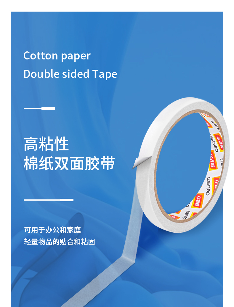 商品名稱:得力30400 高粘棉紙雙面膠帶 9mm*10y(9.1m/卷) 辦公用品 白色 單卷裝