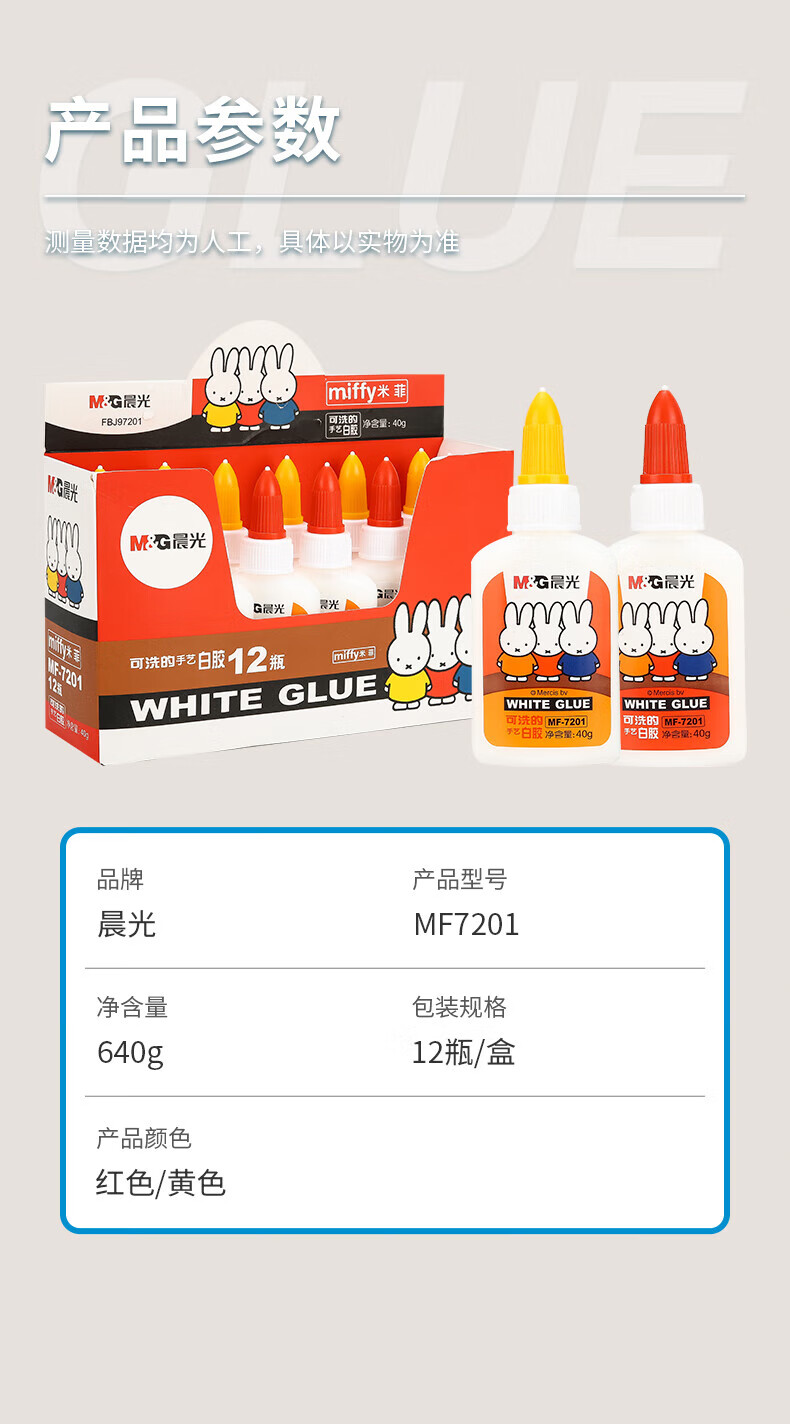 商品名稱:晨光MF7201 可水洗手工DIY白膠 40g高粘性白乳膠水 顏色隨機(jī) 單支裝