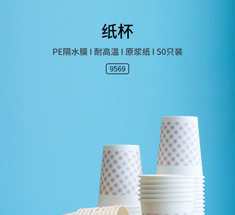 商品名稱:得力9569 一次性紙杯 200ml木漿紙網(wǎng)格加厚杯子/水杯 50只/包